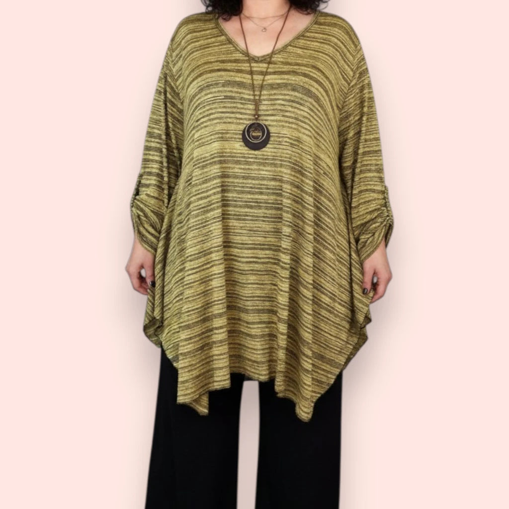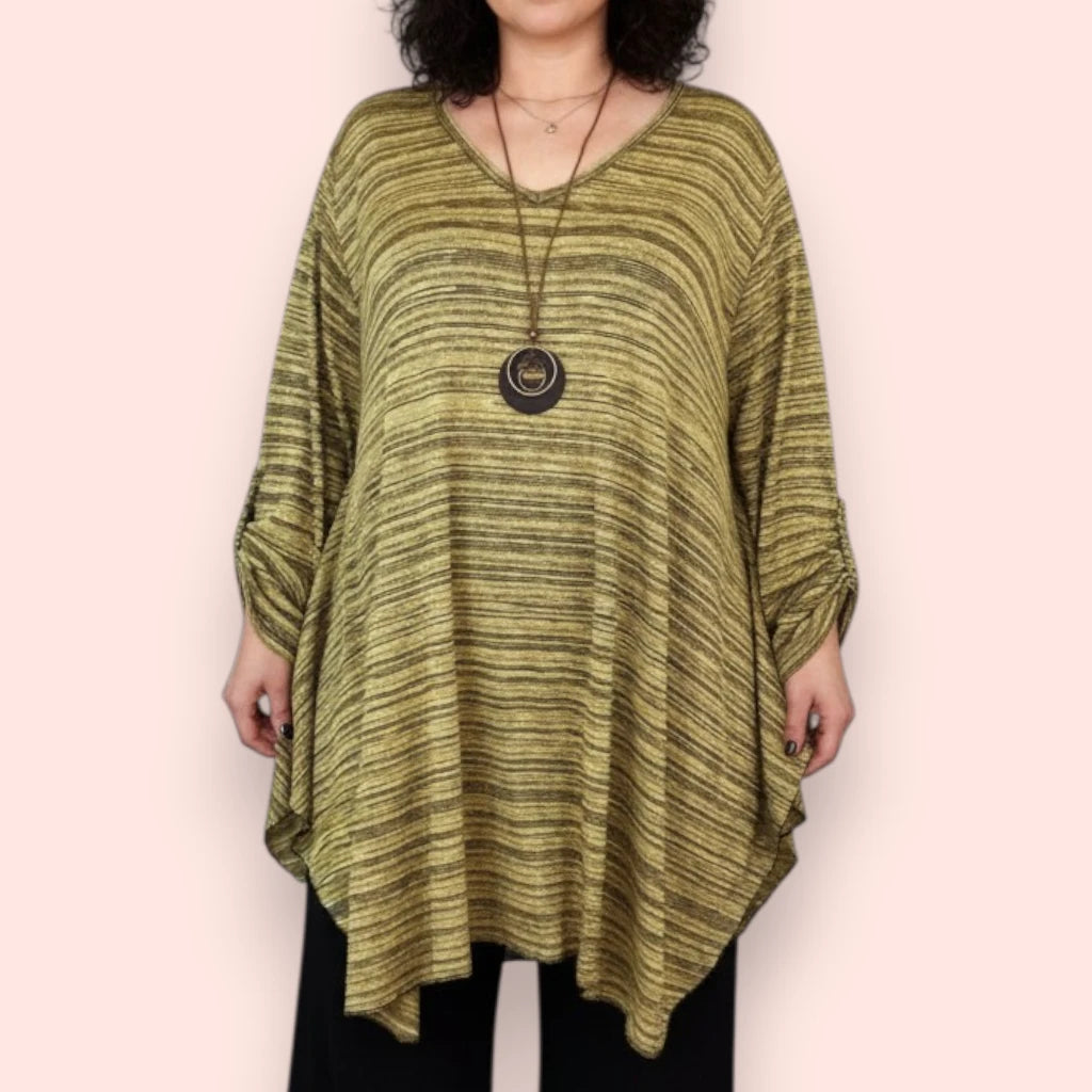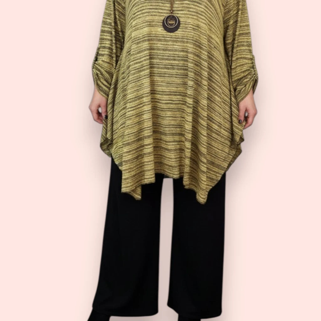 Il Completo Taglie Forti Ardisia Con Collana è composto dalla maglia in misto viscosa fantasia elasticizzata Brigitta e dal Pantalone in crepe di misto viscosa Tivoli. Grandissima vestibilità, Made in Italy, Taglia Unica, Colore FANTASIA / NERO