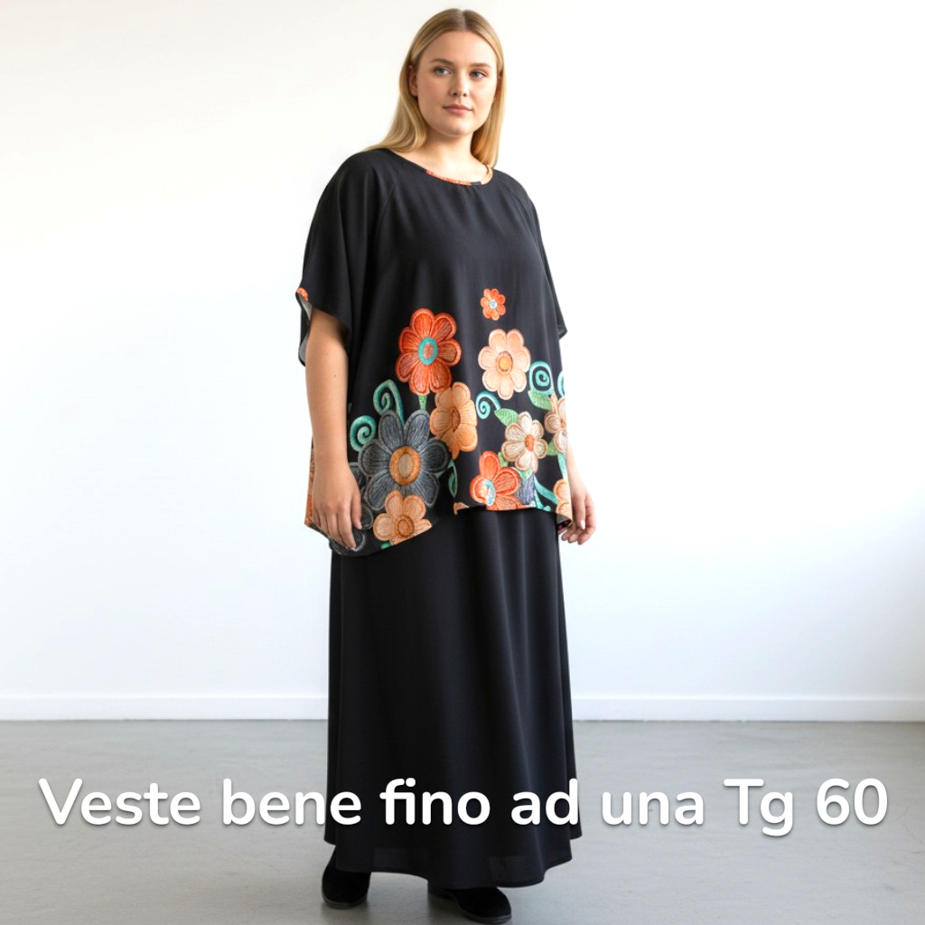 Vestibilità eccezionale: Giro seno 160 cm, giro fianchi 160 cm, altezza 72 cm