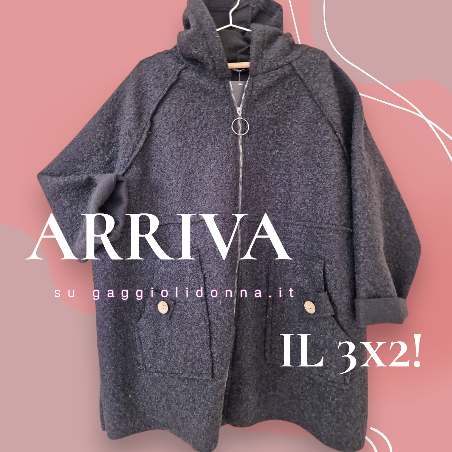 Il modello Moena è una splendida Giacca taglia grande in tessuto di lana cotta. Modello con manica raglan, cappuccio e tasche a toppa davanti con bottone . Chiusura con zip, grandissima vestibilità,