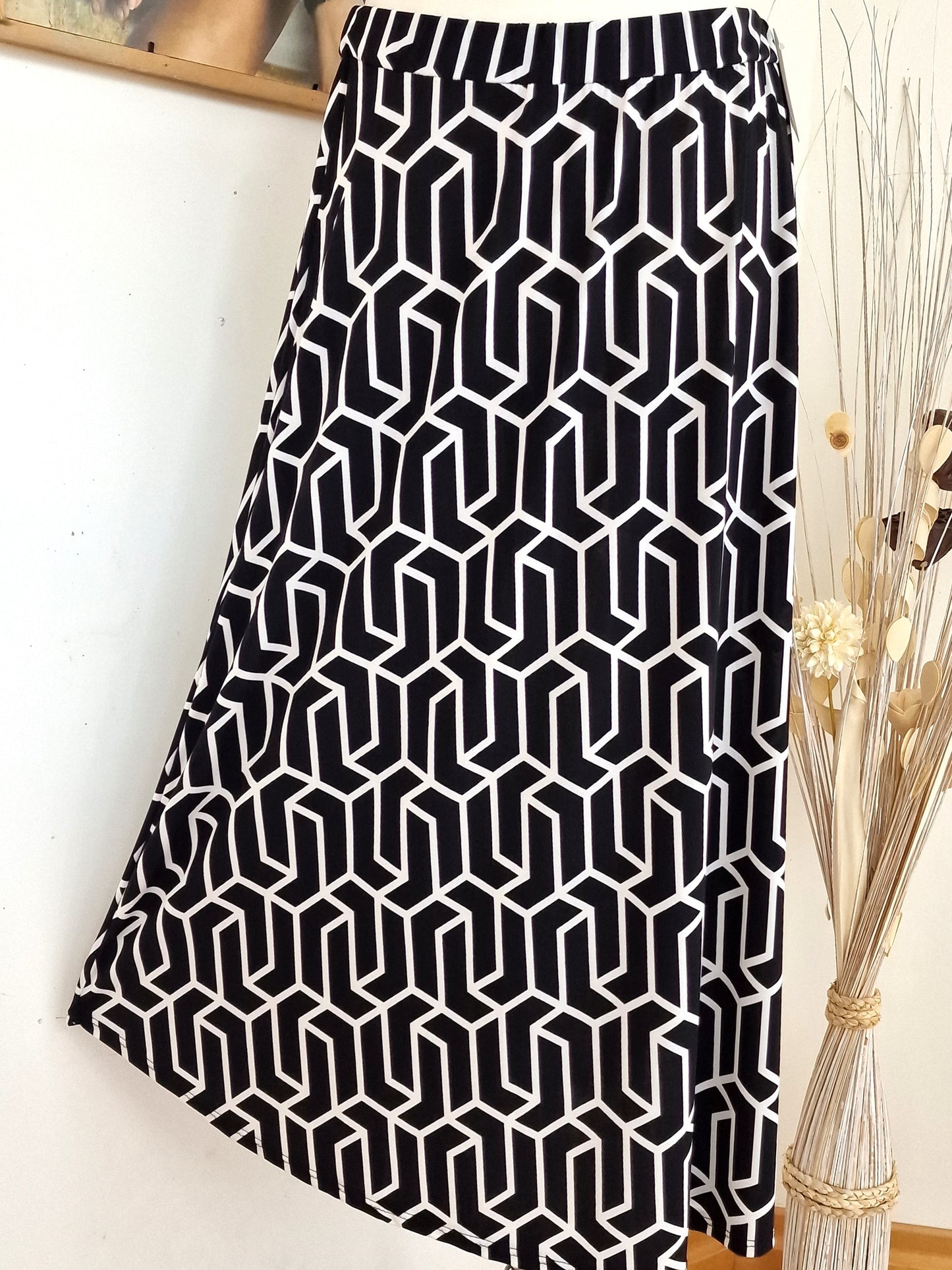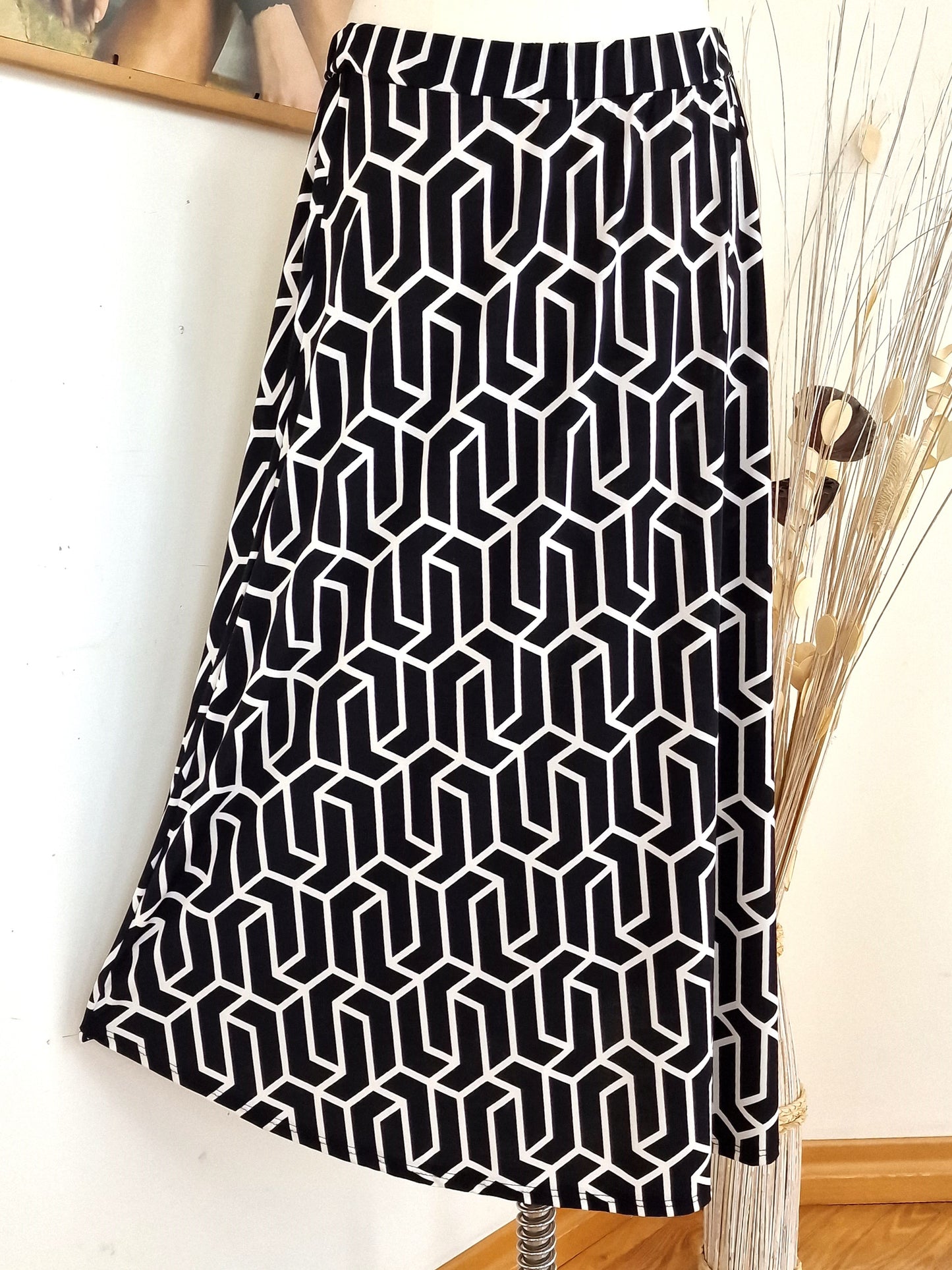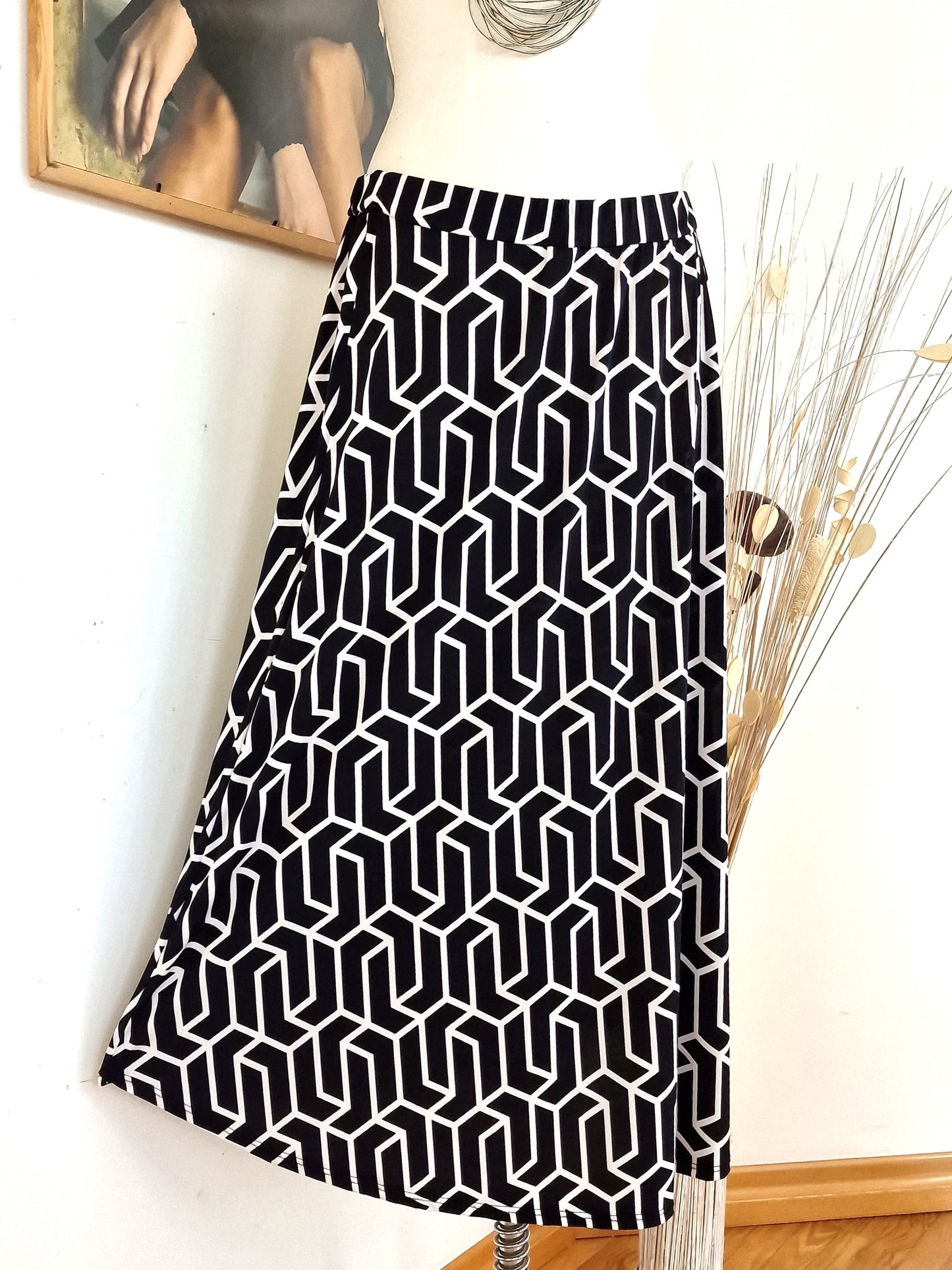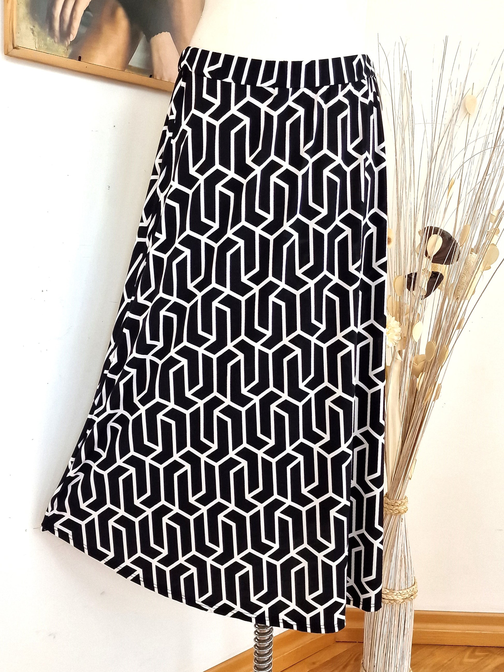Il modello Giglio è una gonna lunga in crepe di misto viscosa elasticizzata Fantasia. Orlo stondato, elastico in vita, grandissima vestibilità, taglia unica, Made in Italy,