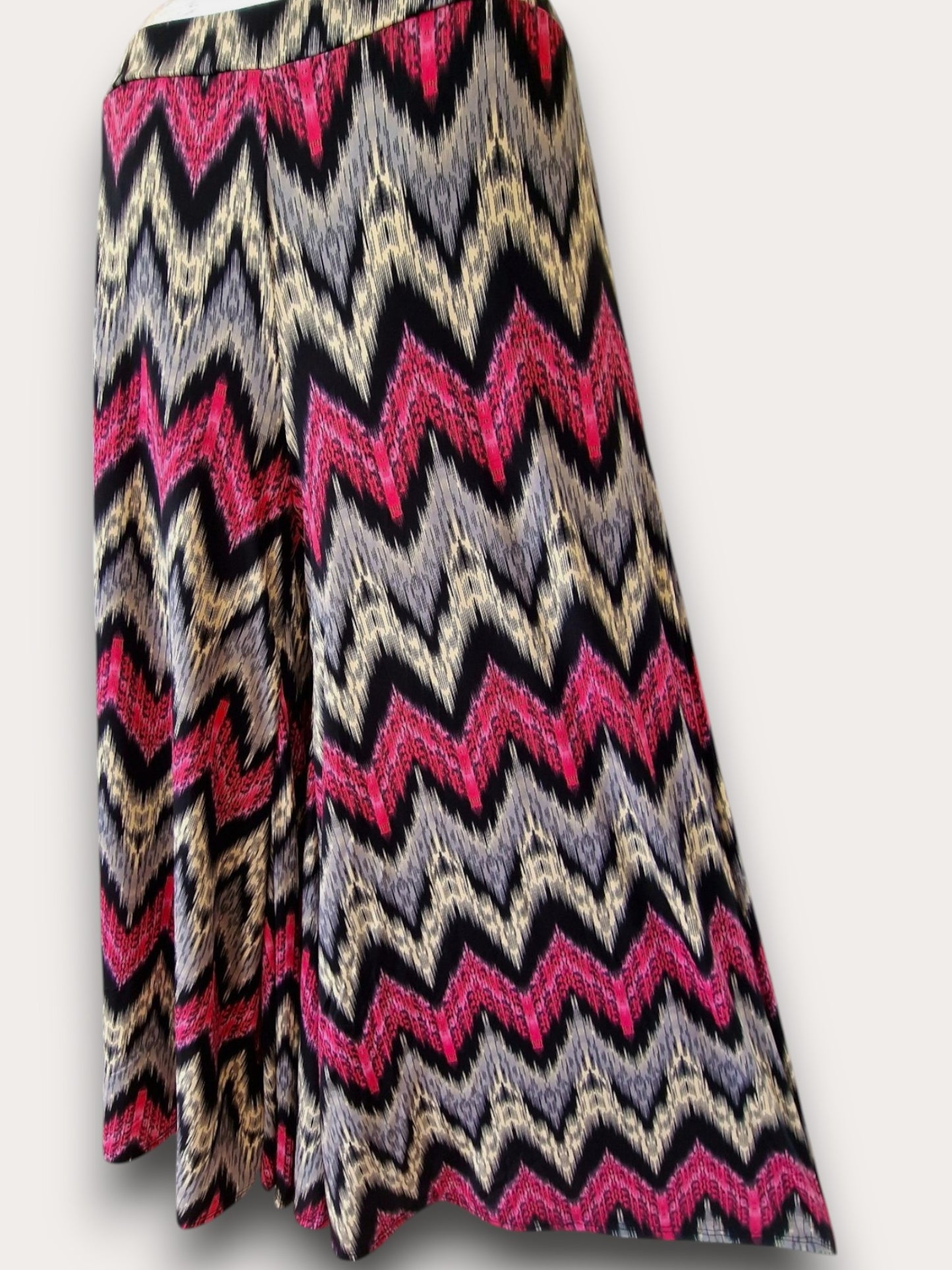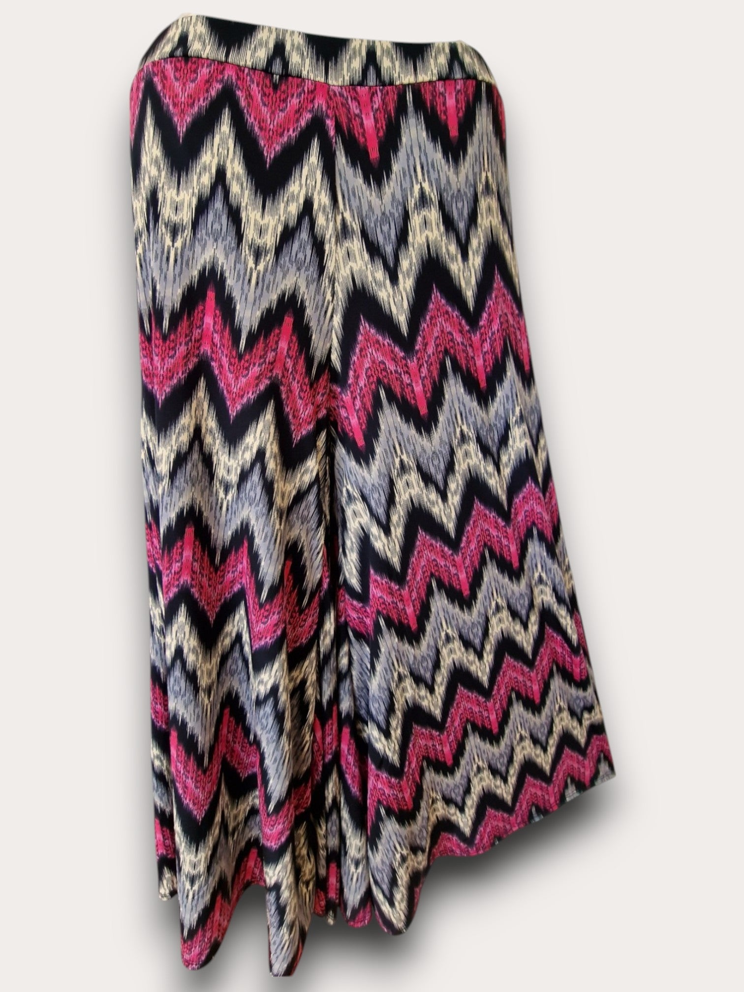 La Gonna Pantalone Taglie Grandi Caserta è un capo versatile e confortevole, ideale per chi cerca una soluzione comoda e alla moda. Realizzata in maglina elasticizzata fantasia di misto viscosa, con un elastico in vita, offre una grandissima vestibilità e un comfort eccezionale. Il modello con gamba molto ampia rende questa gonna pantalone perfetta per donne che vestono dalla taglia 50 fino alla taglia 62/64. Made in Italy, Questo capo è perfetto per look casual e chic.