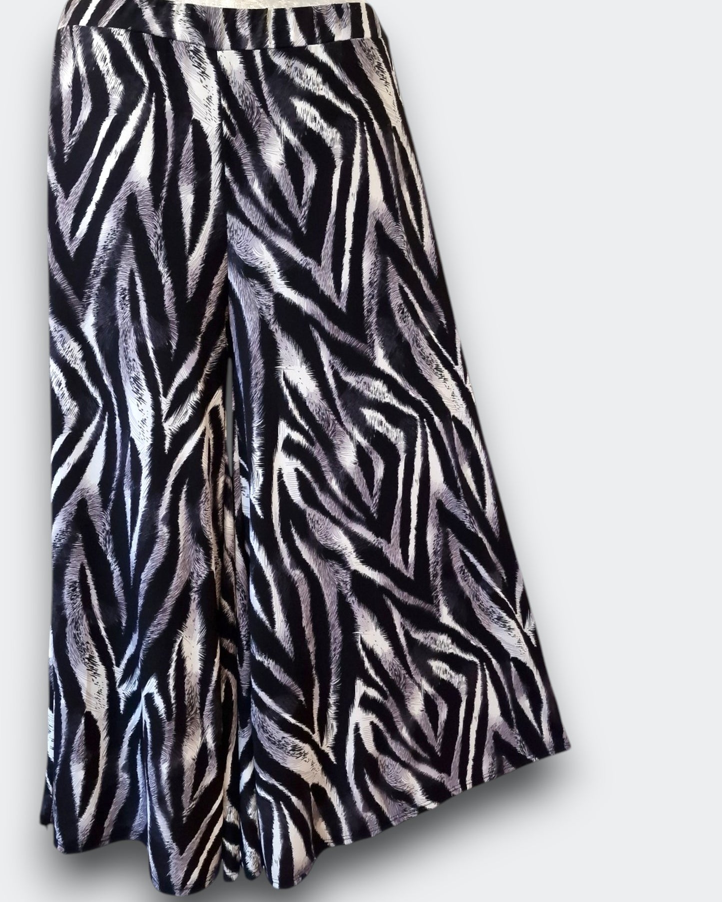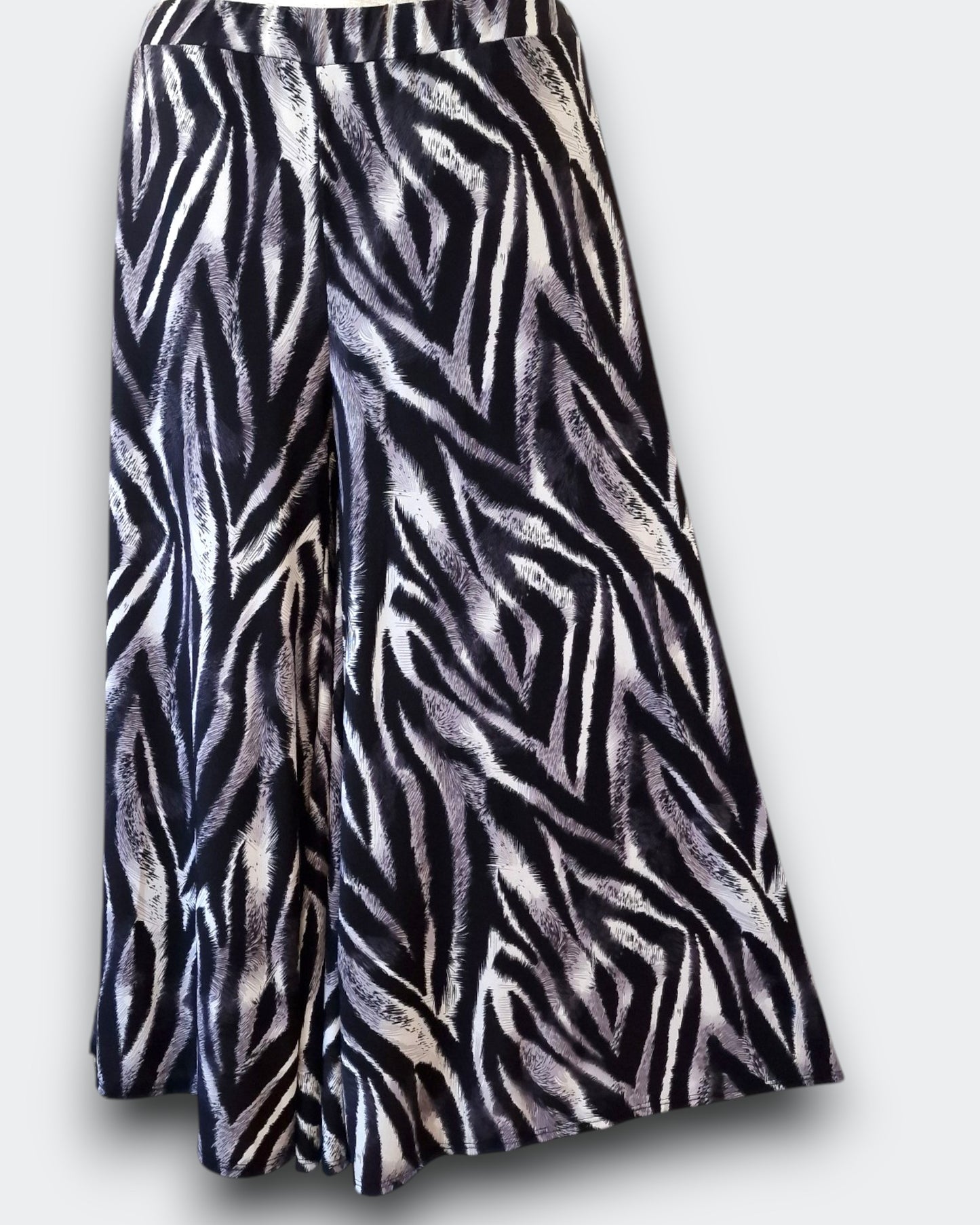 La Gonna Pantalone Taglie Grandi Positano è un capo versatile e confortevole, ideale per chi cerca una soluzione comoda e alla moda. Realizzata in maglina elasticizzata fantasia di misto viscosa, con un elastico in vita, offre una grandissima vestibilità e un comfort eccezionale. Il modello con gamba molto ampia rende questa gonna pantalone perfetta per donne che vestono dalla taglia 50 fino alla taglia 62/64. Made in Italy, Questo capo è perfetto per look casual e chic.