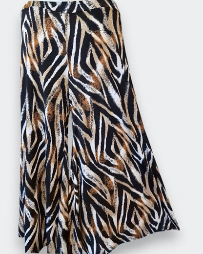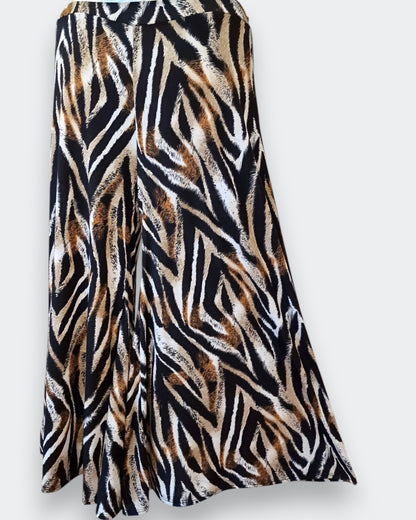 La Gonna Pantalone Taglie Grandi Vesuvio è un capo versatile e confortevole, ideale per chi cerca una soluzione comoda e alla moda. Realizzata in maglina elasticizzata fantasia di misto viscosa, con un elastico in vita, offre una grandissima vestibilità e un comfort eccezionale. Il modello con gamba molto ampia rende questa gonna pantalone perfetta per donne che vestono dalla taglia 50 fino alla taglia 62/64. Made in Italy, Questo capo è perfetto per look casual e chic.