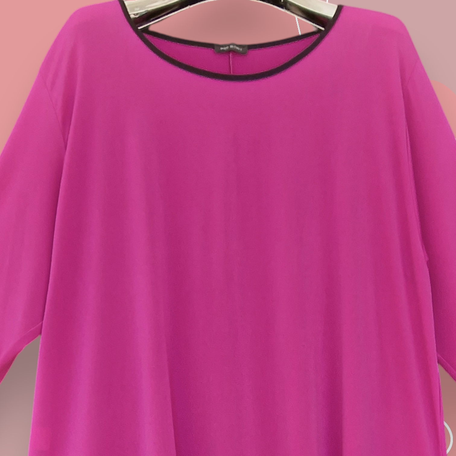 Il completo Nancy è composto dalla maglia in crepe di misto viscosa elasticizzata manica 3/4 con bordature a contrasto e il pantalone con elastico in vita dello stesso tessuto . La maglia bordata ed il pantalone a palazzo lo rendono elegante e versatile allo stesso tempo