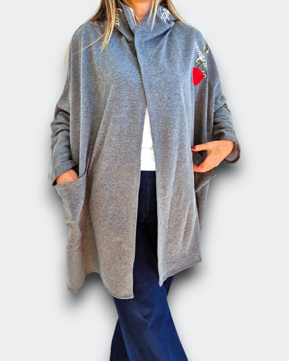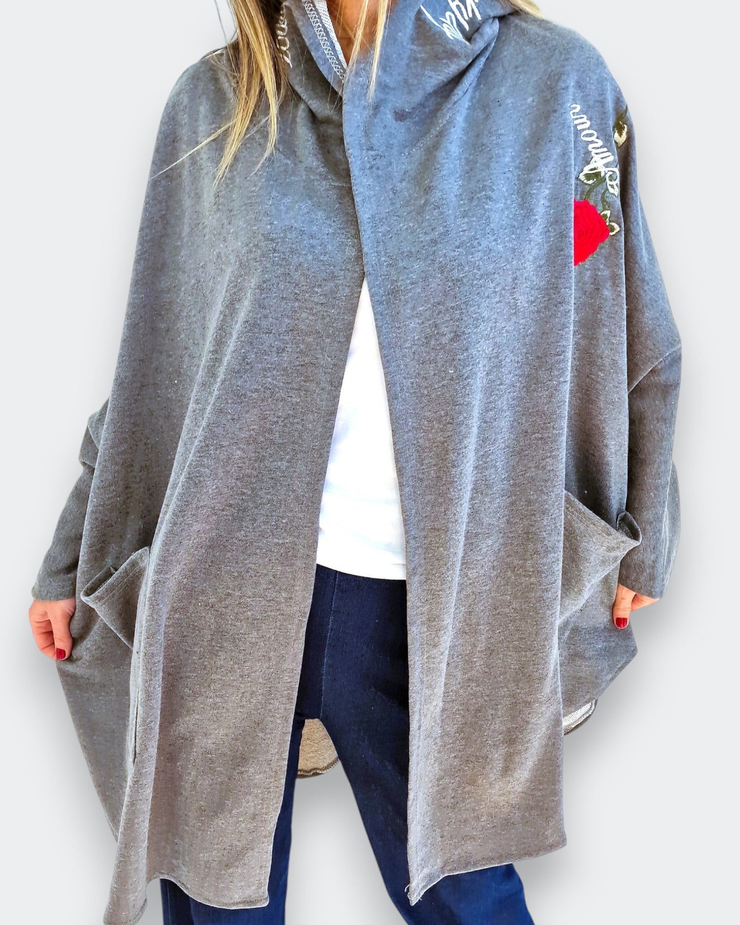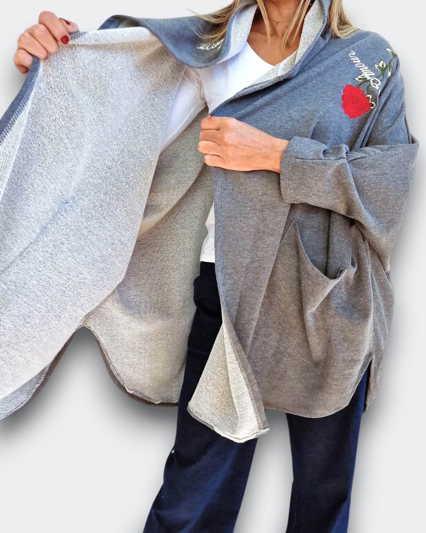 Scopri la nostra Maxi Felpa Taglie Forti Ester un capo versatile e confortevole, perfetto per per la primavera. Realizzata in tessuto felpato 90% cotone questo modello è senza allacciatura ed ha un comodo cappuccio ricamato ed un ricamo sulla spalla , Questa felpa offre una grandissima vestibilità e stile. Dotata di tasche frontali e con un taglio a pipistrello è ideale per aggiungere un tocco casual al tuo look quotidiano.