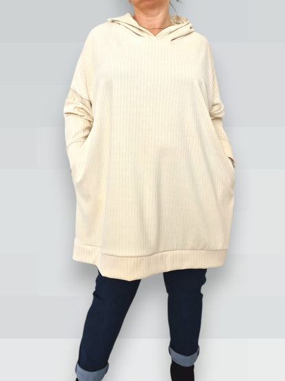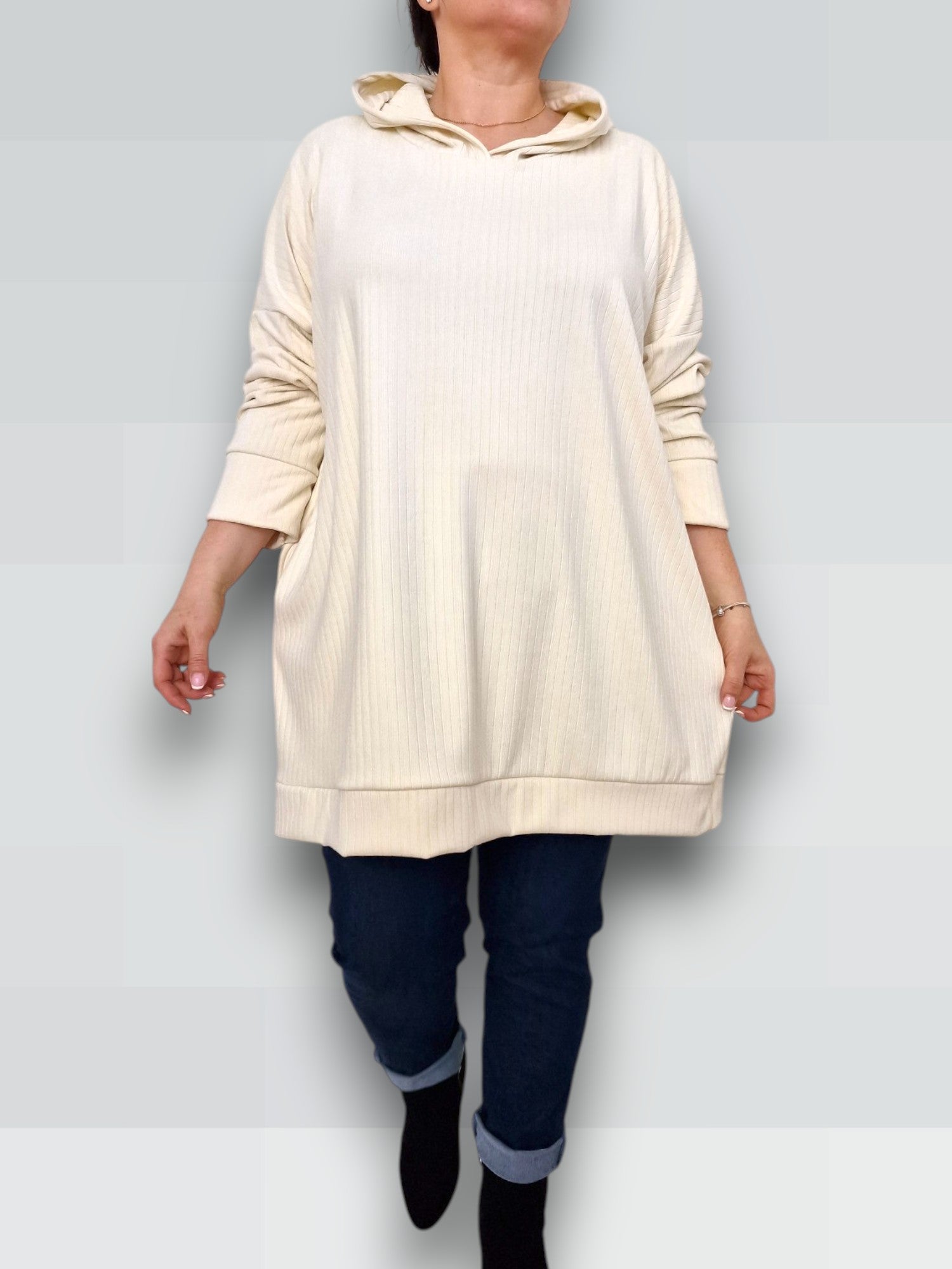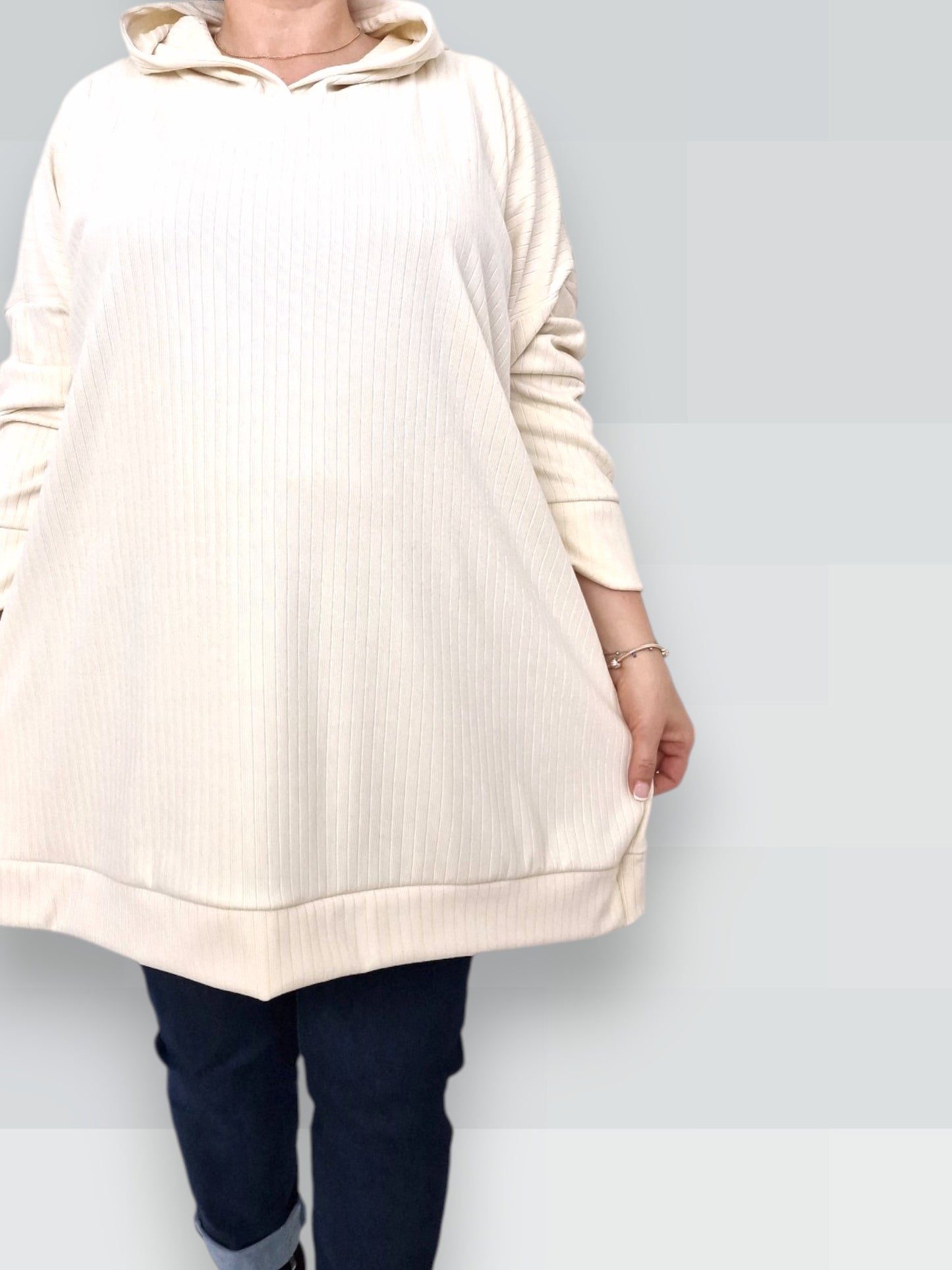 Questa maxi felpa è il mix perfetto di praticità e stile per chi cerca comfort senza rinunciare all'eleganza. Lavabile facilmente, è il capo ideale per il tuo guardaroba quotidiano.