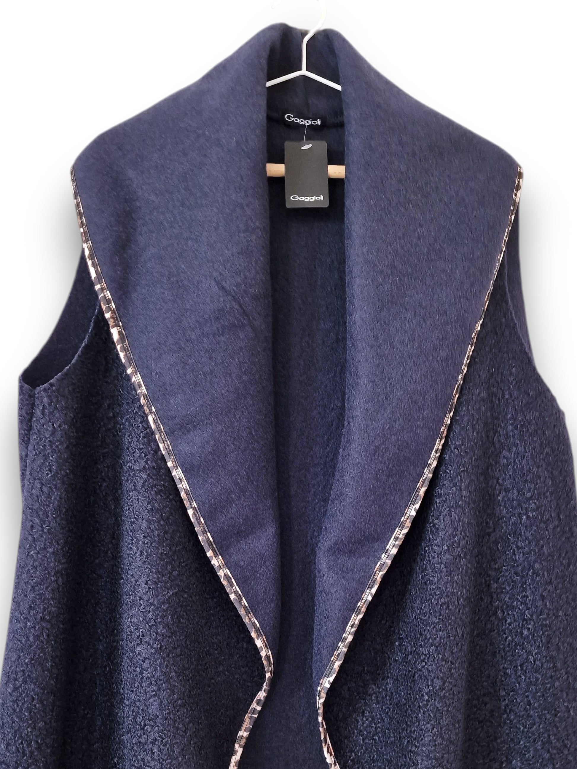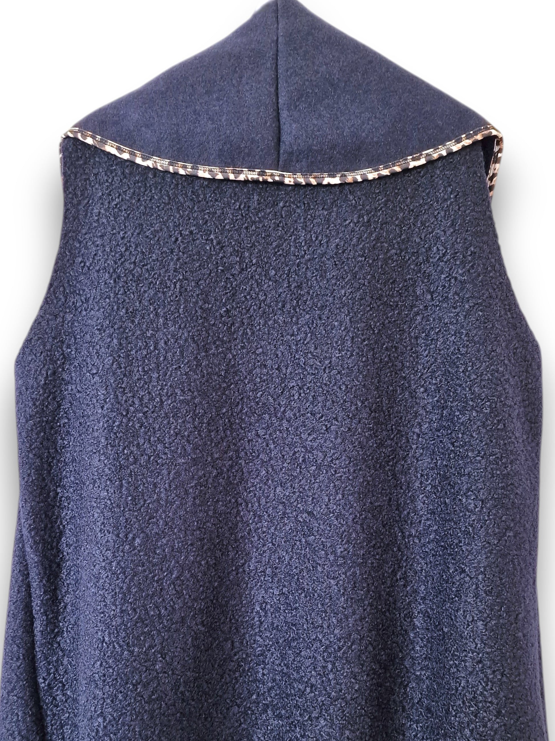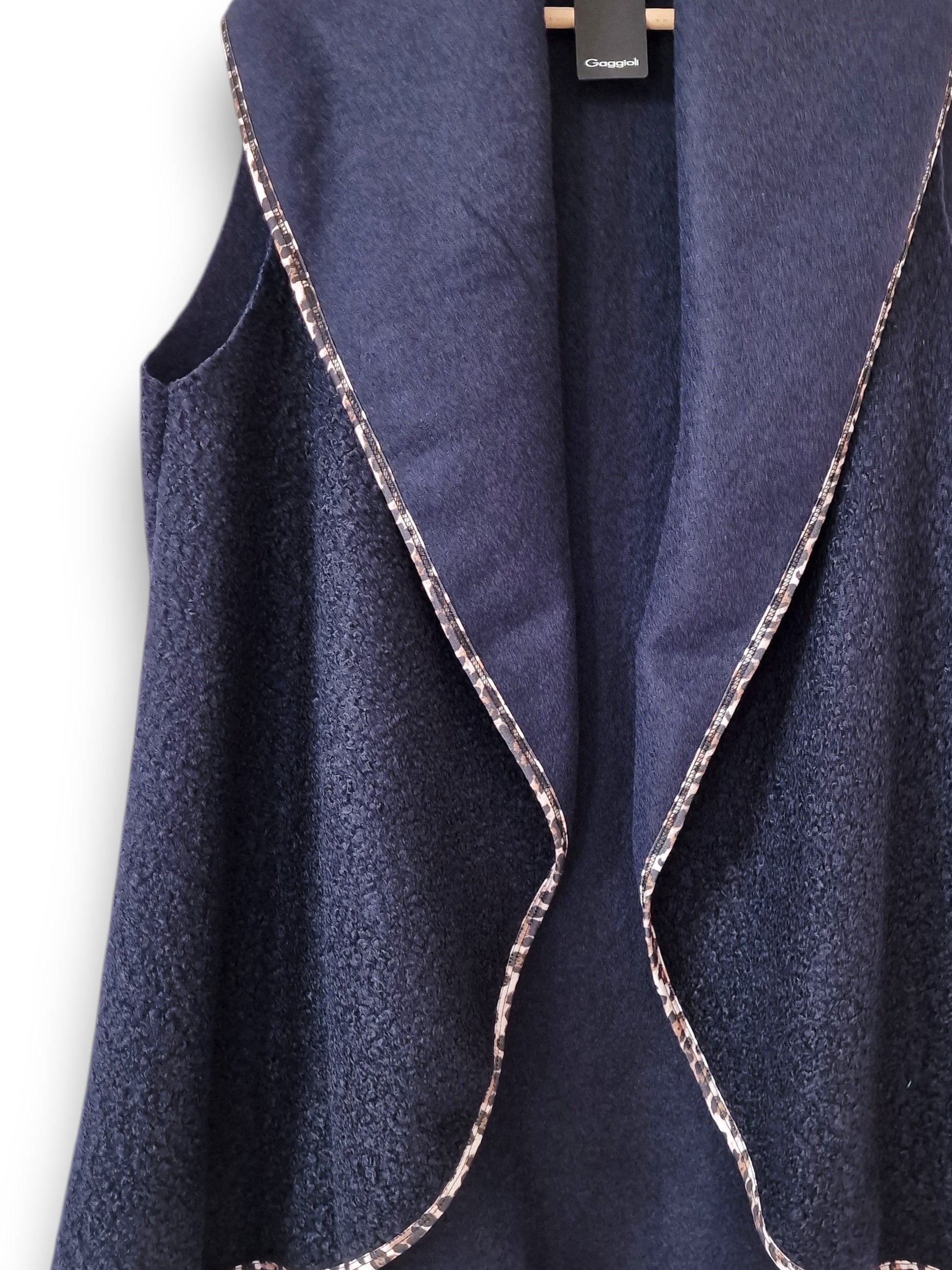 Scopri il nostro Maxi Gilet Taglie Forti Lara, un capo versatile e confortevole, perfetto per questa stagione. Realizzato in tessuto di lana cotta con un grande collo sciallato a contrasto e bordatura in tessuto maculato. Questo gilet offre grande vestibilità e stile. La bordatura e la particolarità del taglio aggiungono un tocco raffinato e casual al tuo look quotidiano.