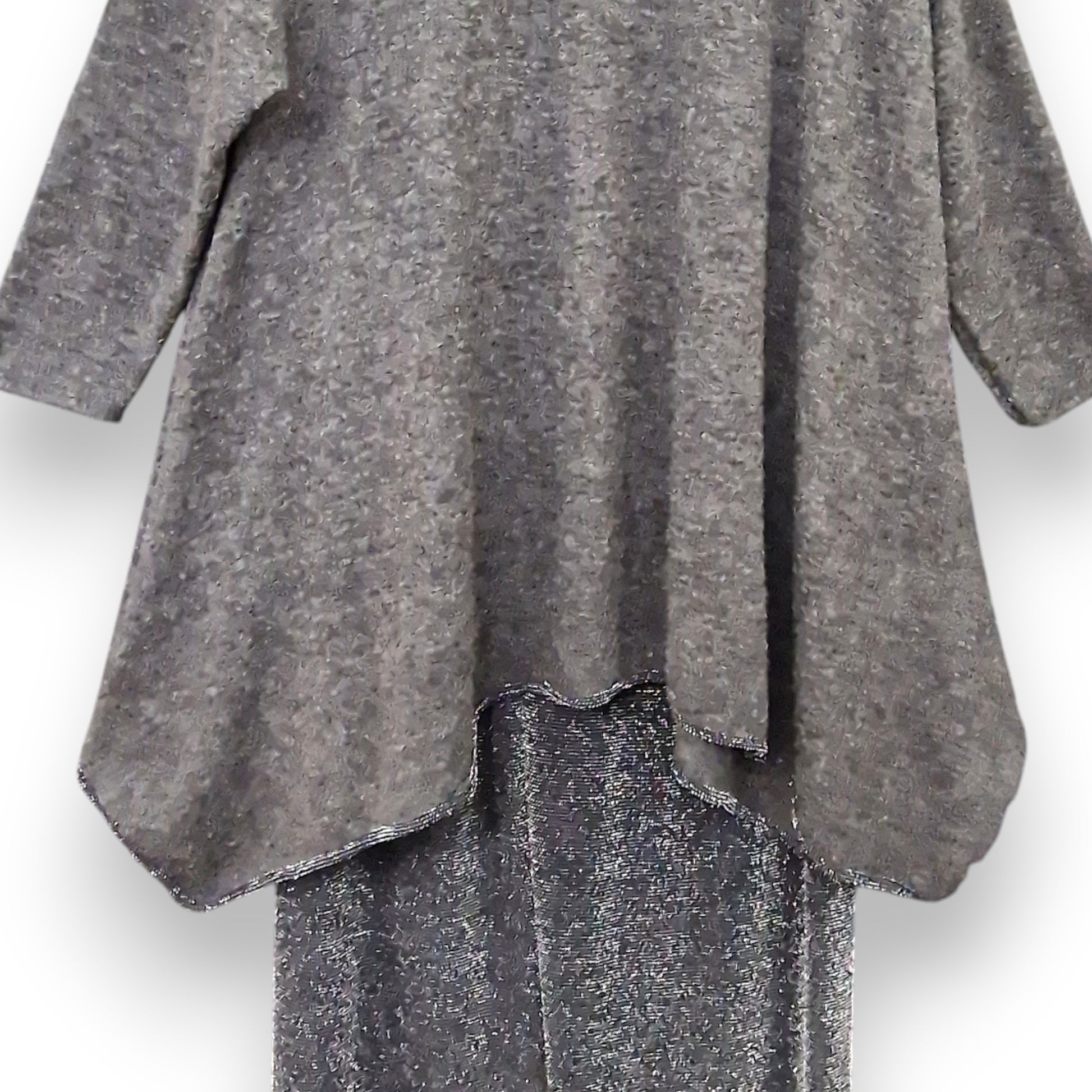 Scopri la Maxi Maglia Taglie Forti Gioele in misto viscosa elasticizzata invernale tinta unita con Bordature in lurex Argentato Girocollo con taglio a trapezio per una grandissima vestibilità, Questa maglia è abbinabile con il pantalone palazzo in lurex Silver