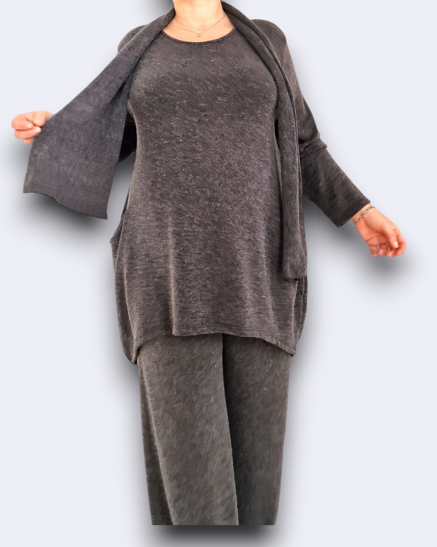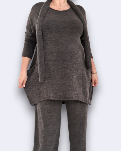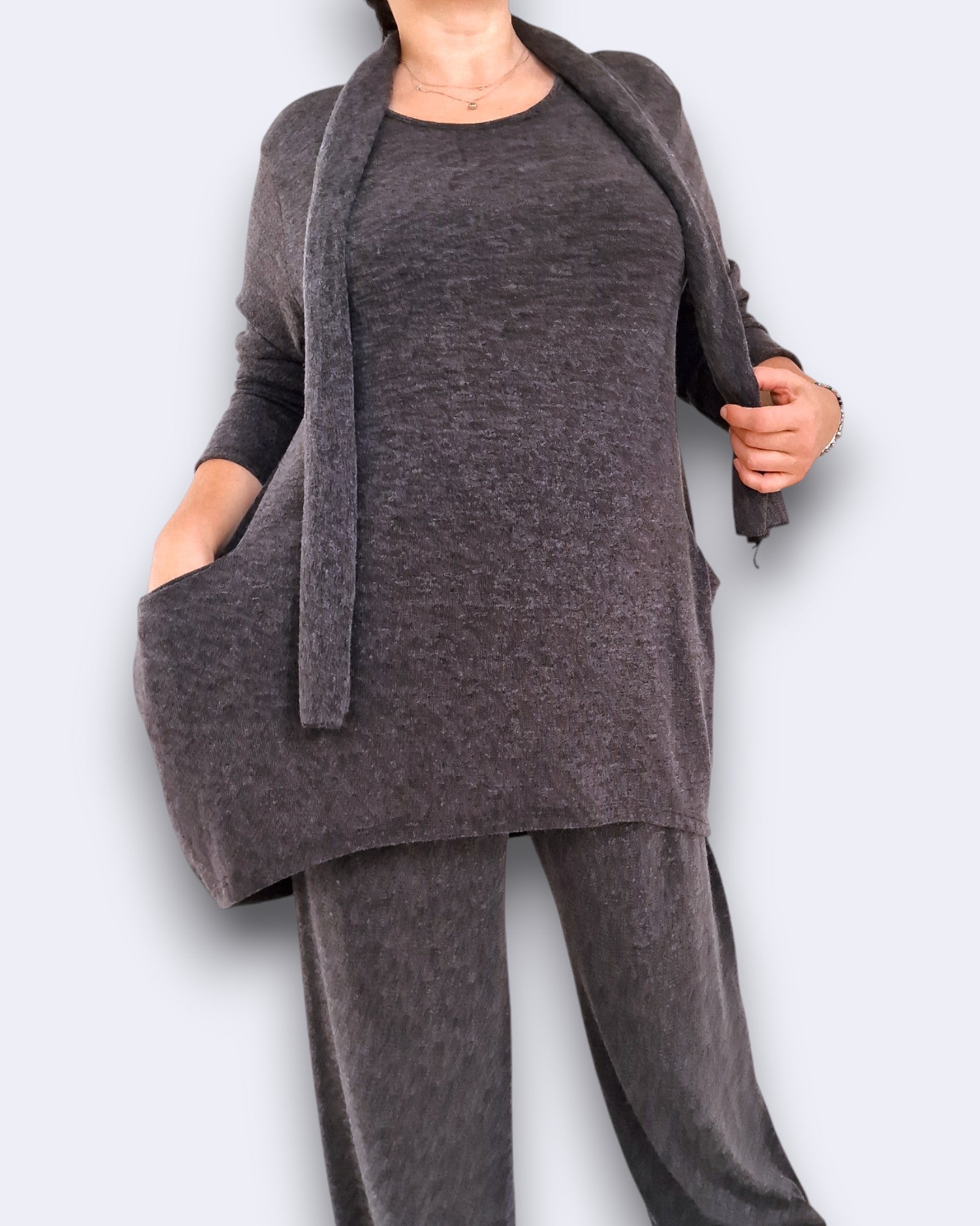 Scopri la Maxi Maglia Taglie Forti Santa in misto viscosa tinta unita con sciarpa abbinata . Girocollo con tasche e taglio a trapezio per una grandissima vestibilità, Questo Maglia offre un ottima vestibilità e stile. la sciarpa dona un tocco raffinato al tuo look quotidiano .