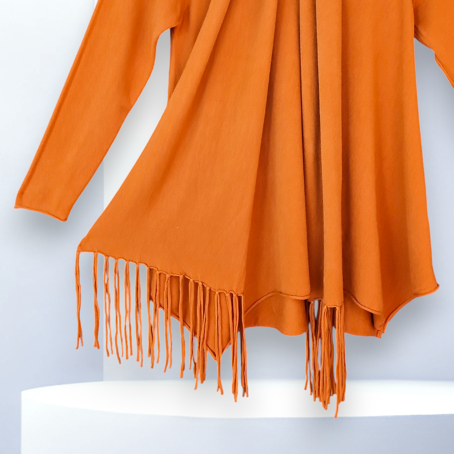 Scopri la Maxi Maglia più Sciarpa Taglie Forti Tilly, in misto viscosa elasticizzata invernale effetto lana Girocollo con taglio a trapezio e una splendida Sciarpa con frange abbinata dello stesso colore e tessuto. Ottima vestibilità,