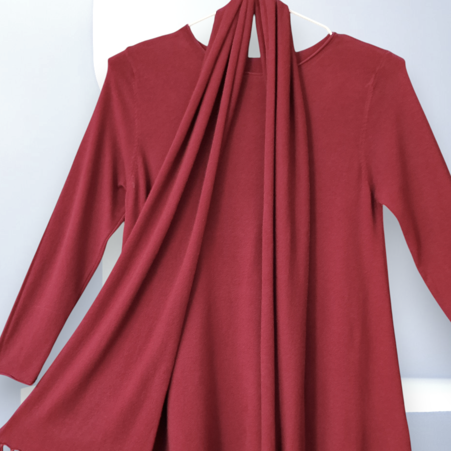 Scopri la Maxi Maglia più Sciarpa Taglie Forti Tora in misto viscosa elasticizzata invernale effetto lana Girocollo con taglio a trapezio e una splendida Sciarpa con frange abbinata dello stesso colore e tessuto. Ottima vestibilità,