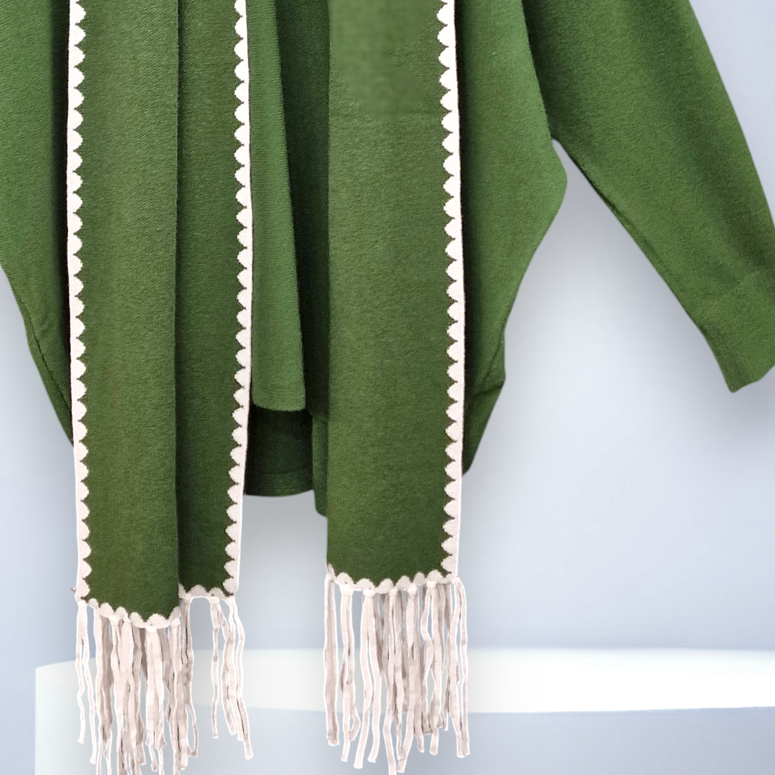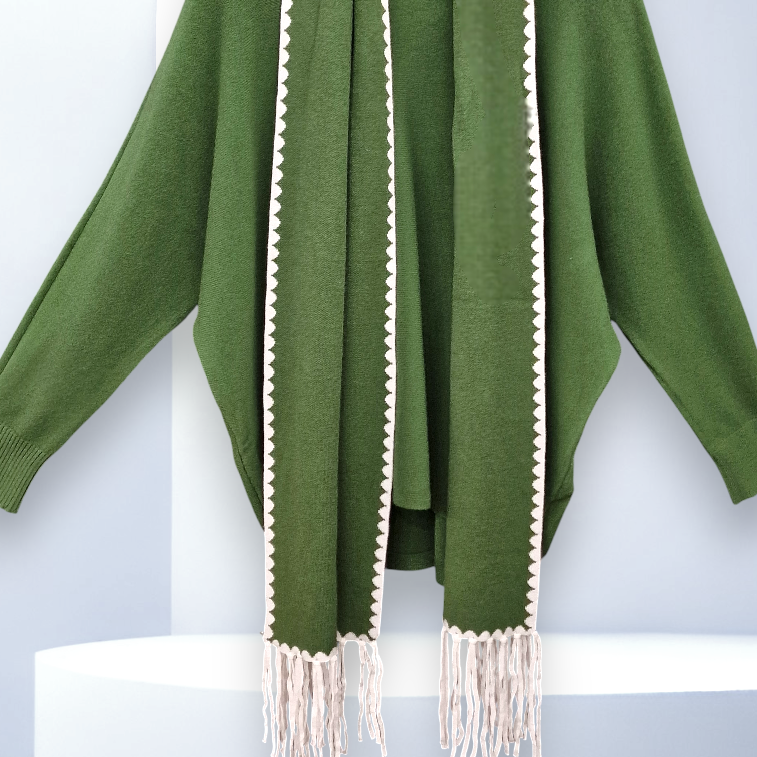 Scopri la Maxi Maglia più Sciarpa Taglie Forti Vania in misto viscosa elasticizzata invernale effetto lana Girocollo con una splendida Sciarpa bordata a contrasto dello stesso colore e tessuto . Grandissima vestibilità,