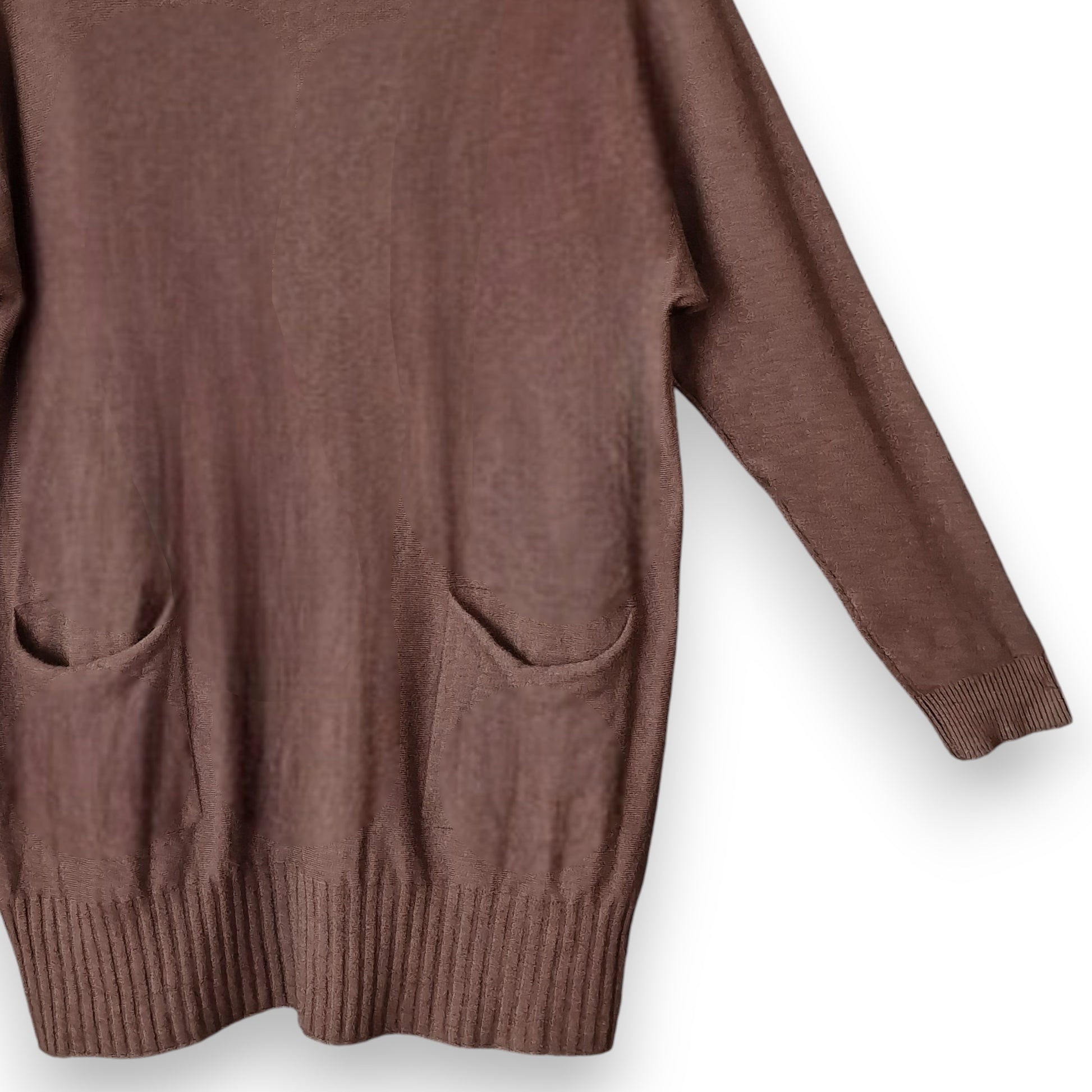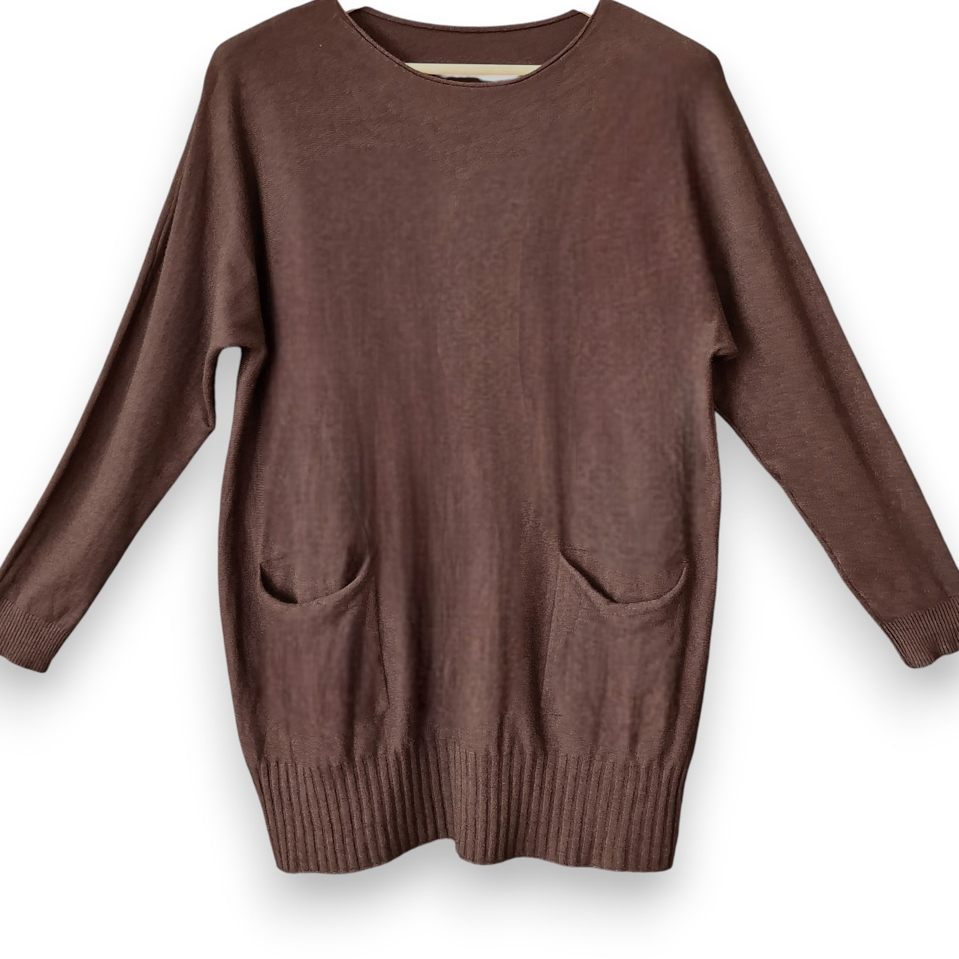Il modello Zira è una Maxi Maglia Taglia Grande Manica lunga in tessuto elasticizzato di misto viscosa e modal effetto lana. Girocollo con tasche davanti e costina sull'orlo. Ottima vestibilità, Questo modello è perfetto come sotto giacca,