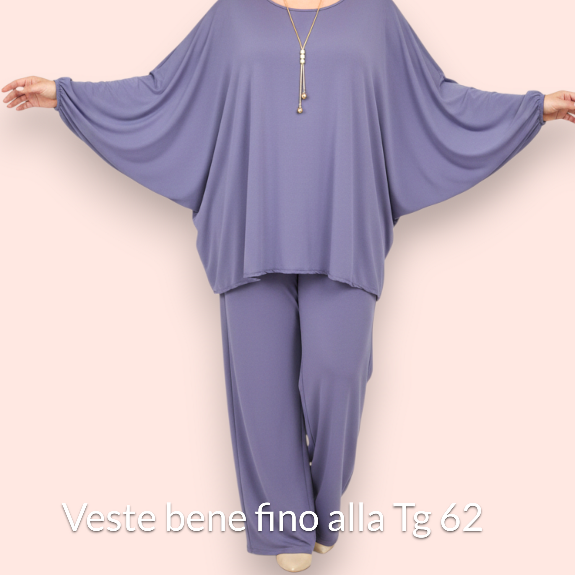 Scopri la Maxi Maglia Taglie Forti Morine in crepe di misto viscosa elasticizzata tinta unita . Girocollo con ampia manica a pipistrello con elastico sul polso per una grandissima vestibilità, La collana dona un tocco raffinato al tuo look quotidiano .