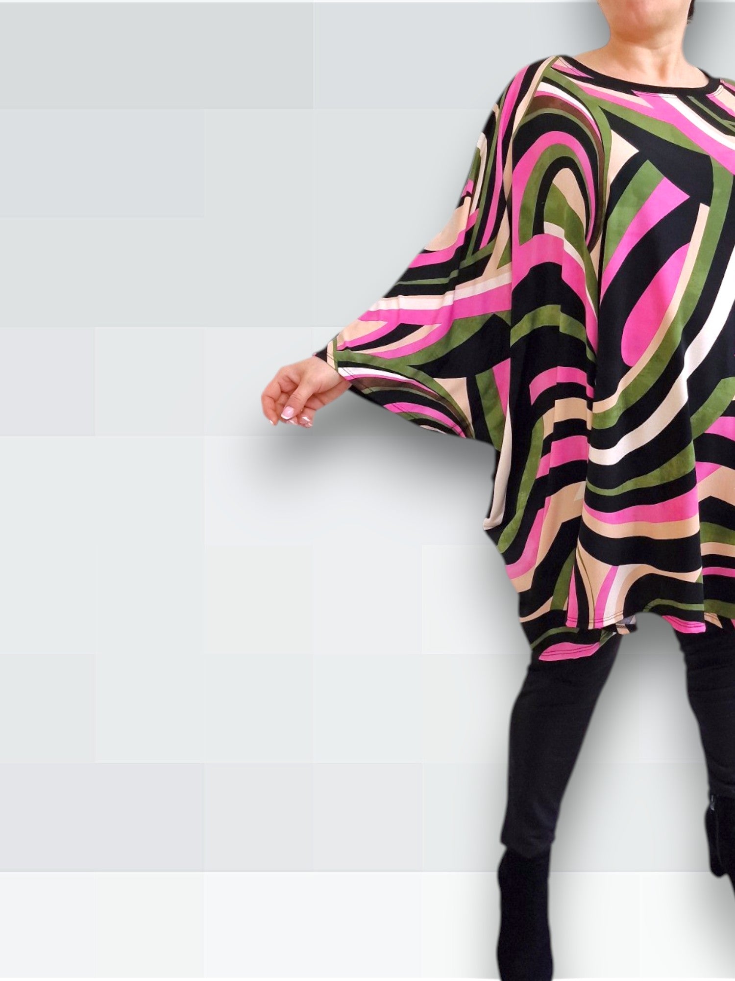 Il modello Drusilla dello a poncho e tessuto tinta unita dietro. Grandissima vestibilità