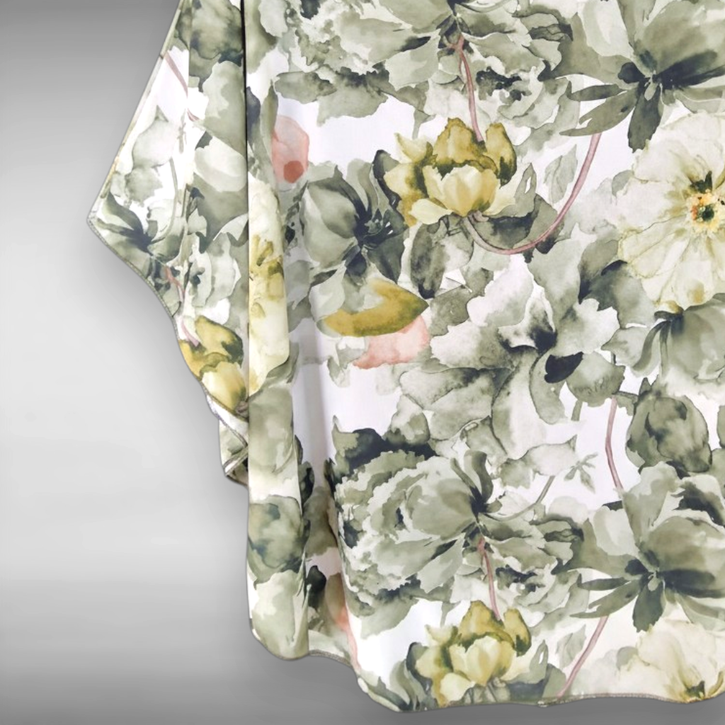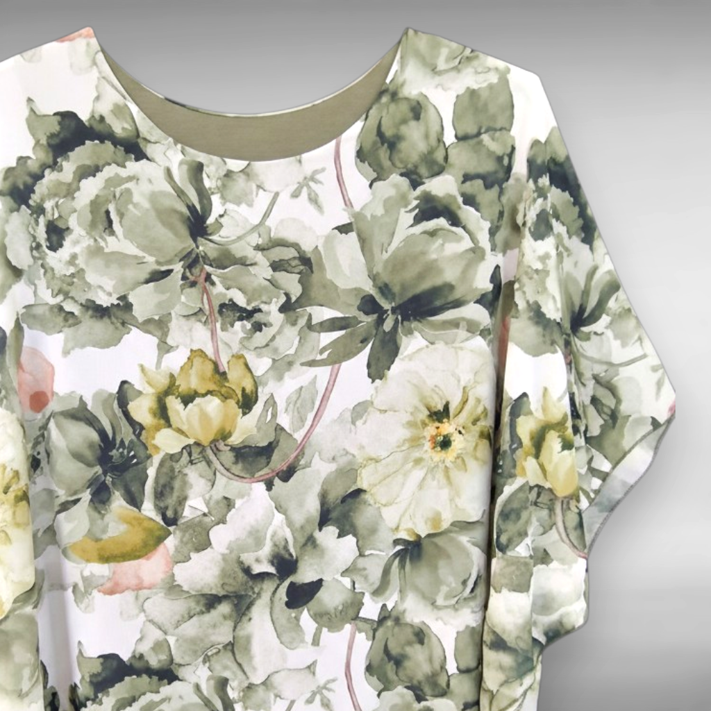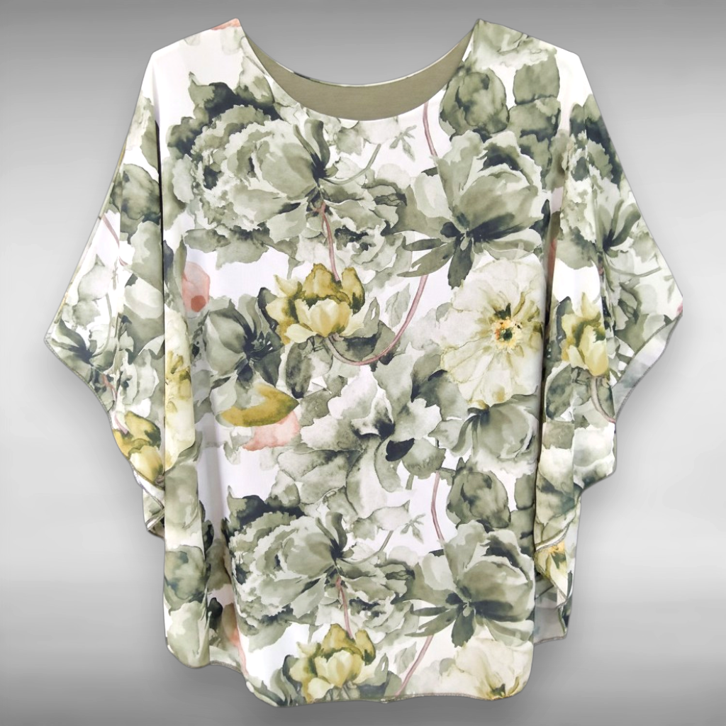 La Maxi Maglia in Georgette Fantasia Valda è un elegante abbinamento composto da un Poncho fantasia in georgette sopra e un top in viscosa elasticizzata abbinato con la fantasia della maglia . Questa maglia offre una grande vestibilità grazie al suo Top interno in tessuto elasticizzato ed è perfetto per le donne che vestono anche le taglie più grandi .