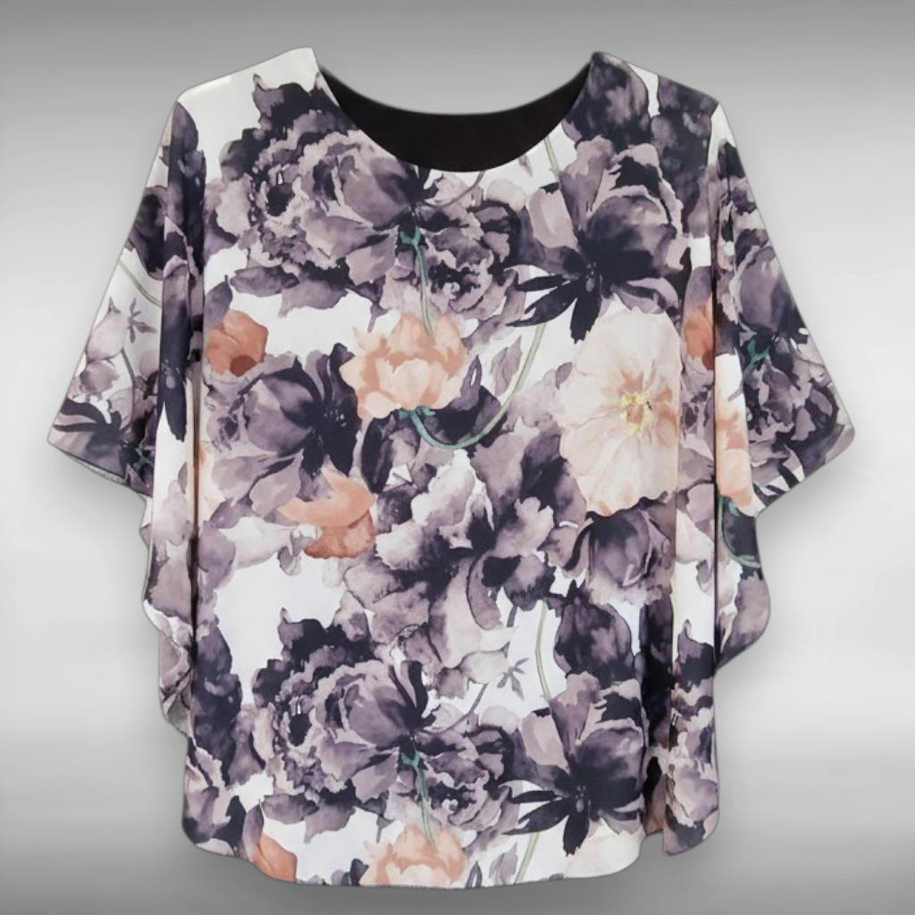 La Maxi Maglia in Georgette Fantasia Virna è un elegante abbinamento composto da un Poncho fantasia in georgette sopra e un top in viscosa elasticizzata abbinato con la fantasia della maglia . Questa maglia offre una grande vestibilità grazie al suo Top interno in tessuto elasticizzato ed è perfetto per le donne che vestono anche le taglie più grandi .