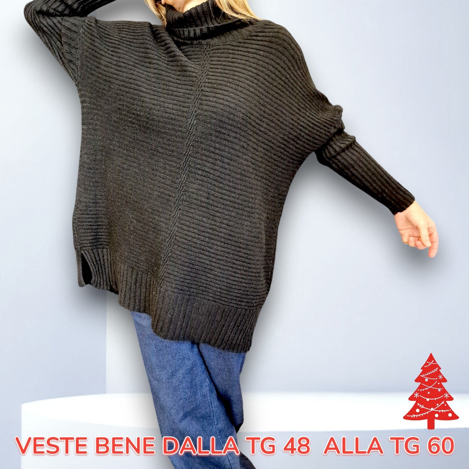Il modello Duillia è una Maxi Maglia Taglia Grande Manica Lunga in tessuto elasticizzato di misto viscosa e modal effetto lana. Collo alto a costina con decorazione a treccia davanti e spacchi laterali. Ottima vestibilità, Questo modello è perfetto per chi cerca una maglia calda e pratica e perfetta anche come sotto giacca .