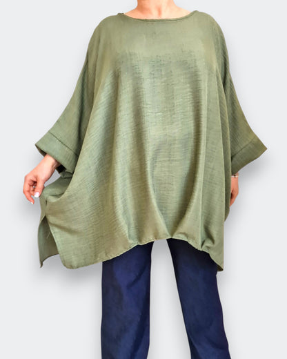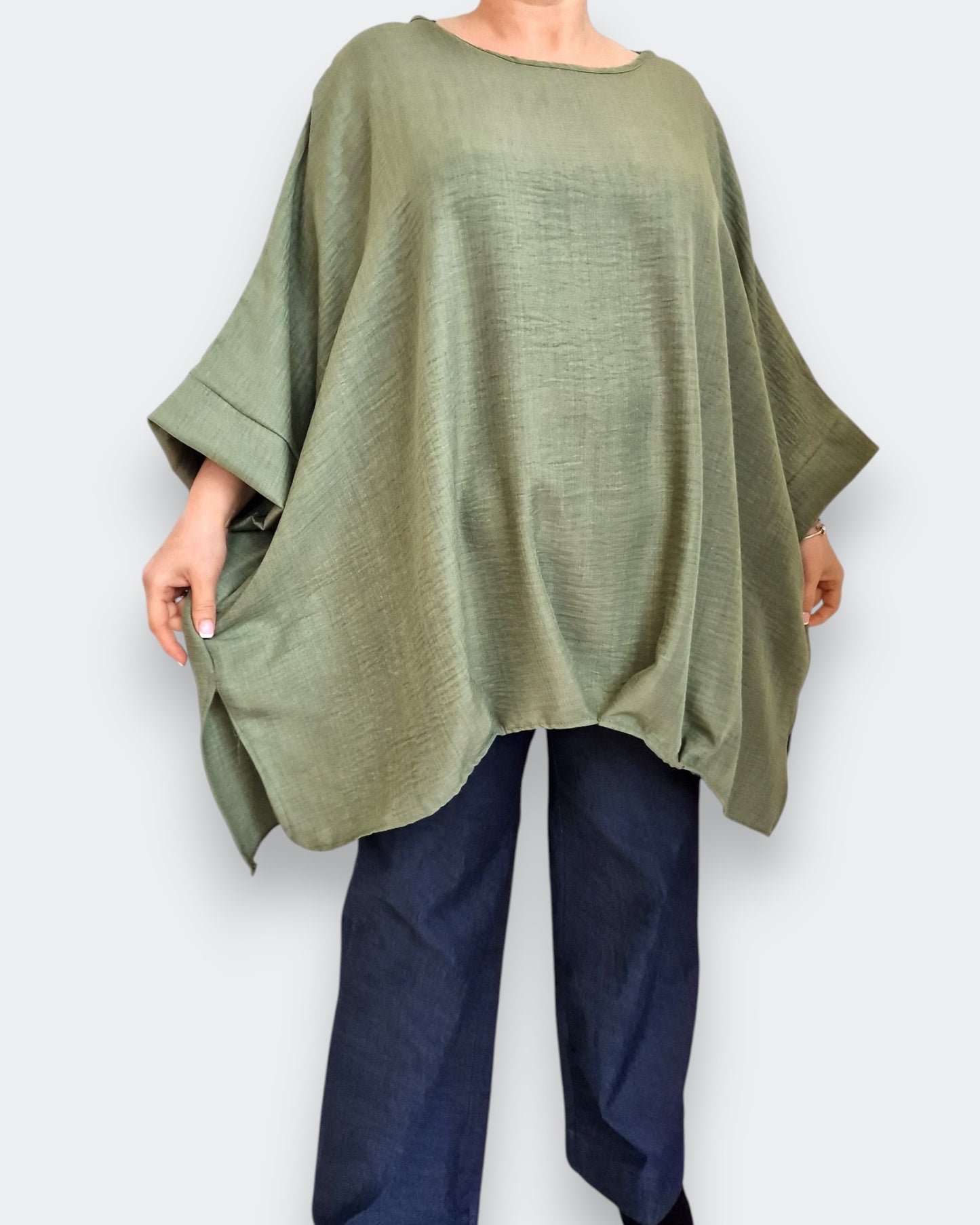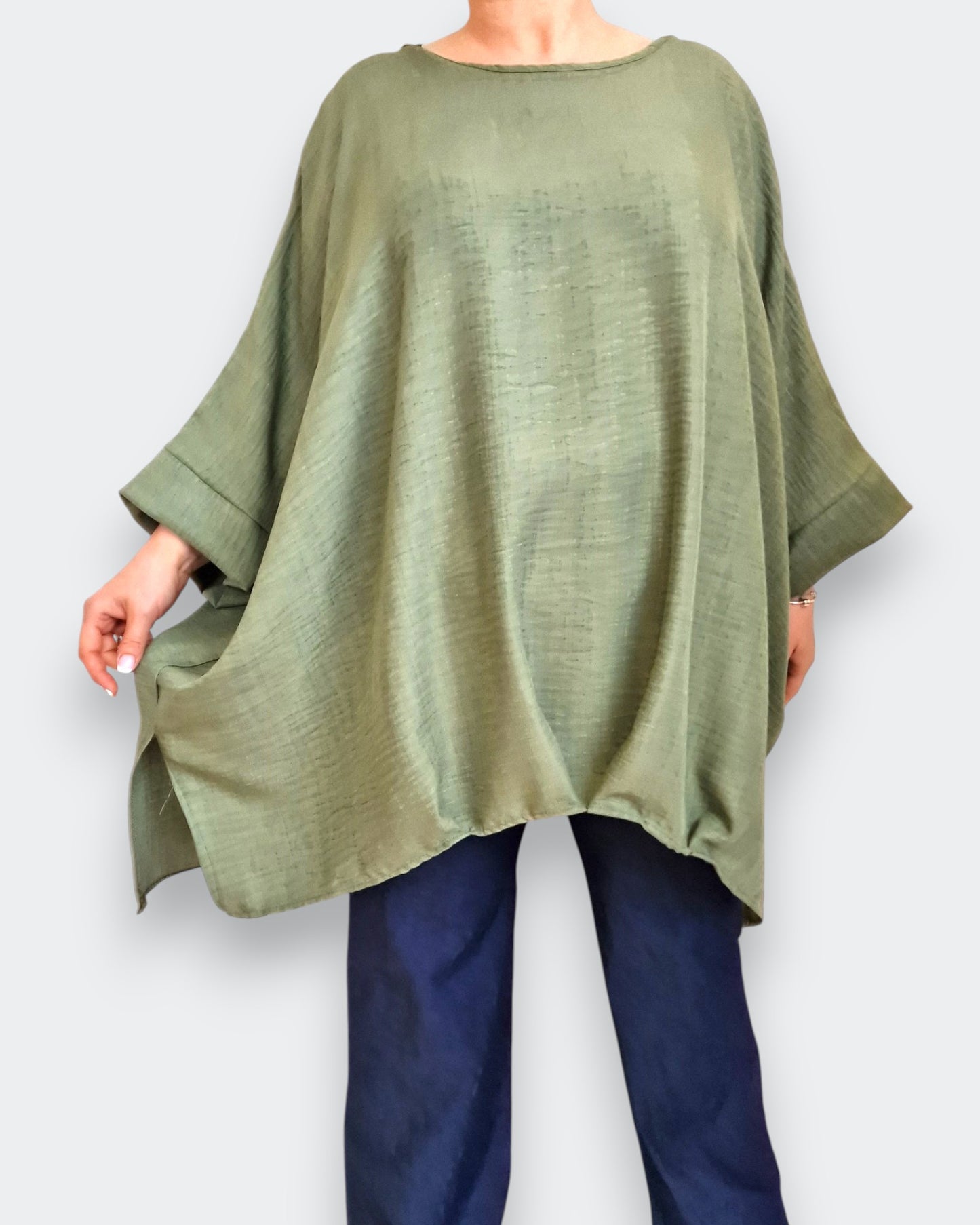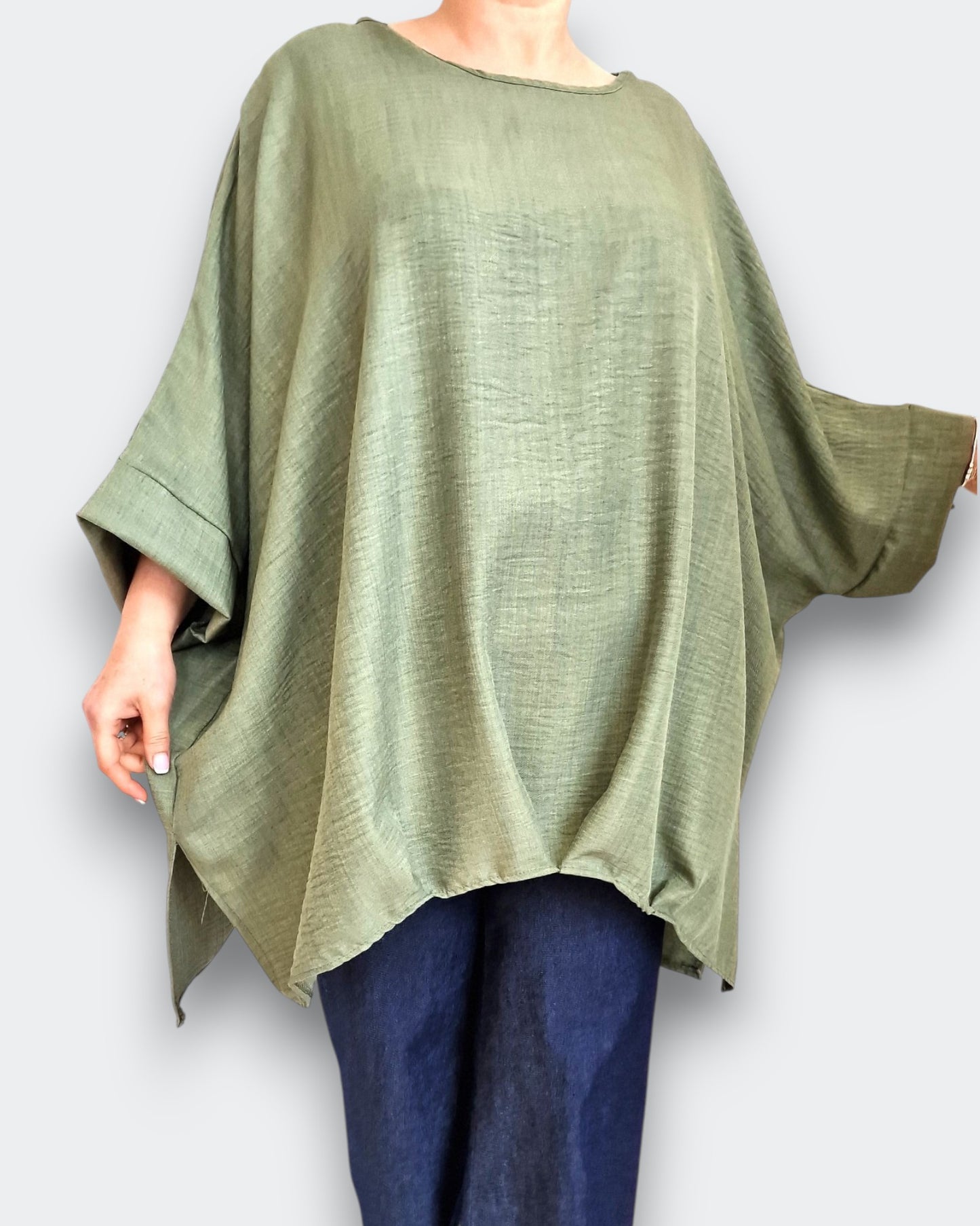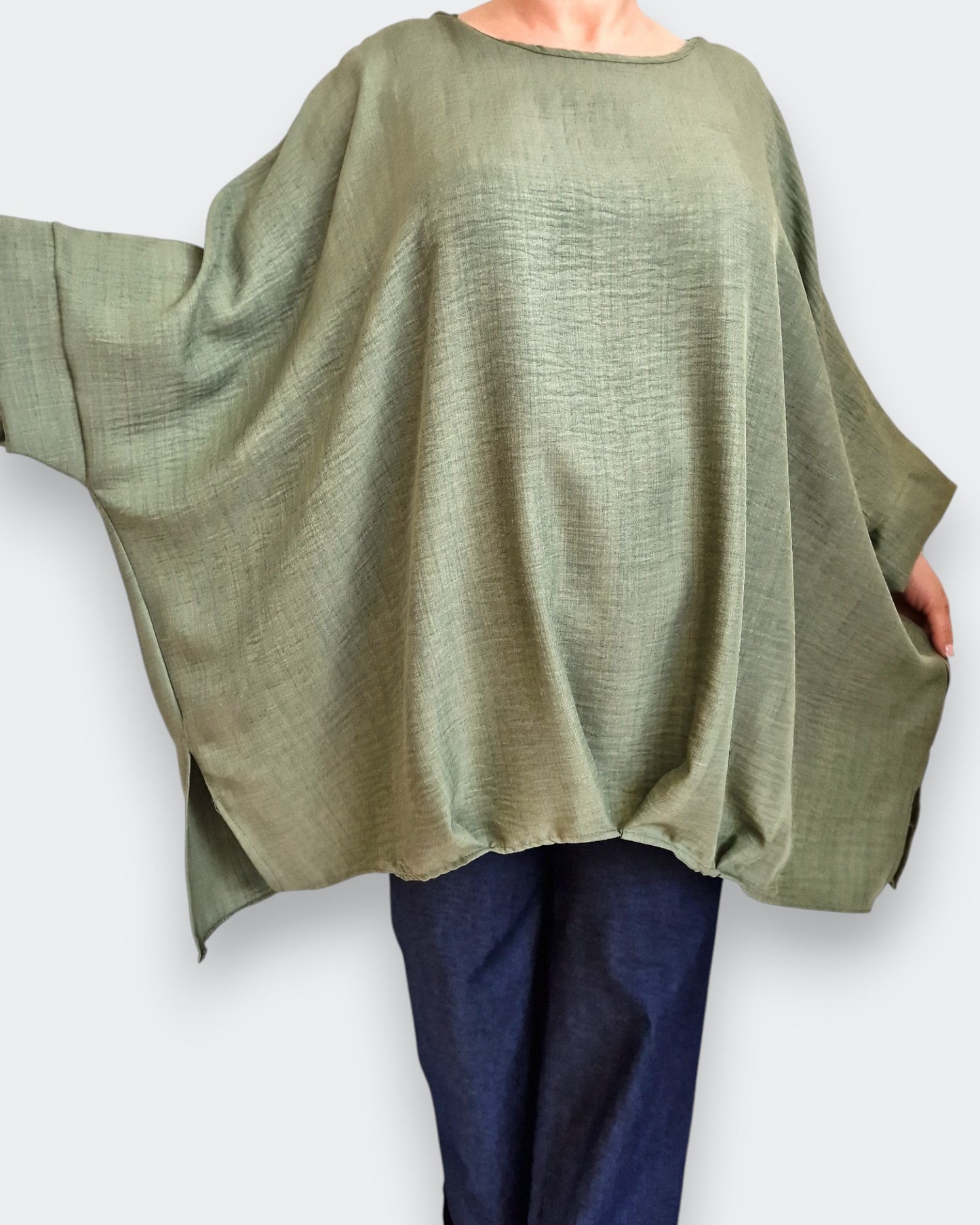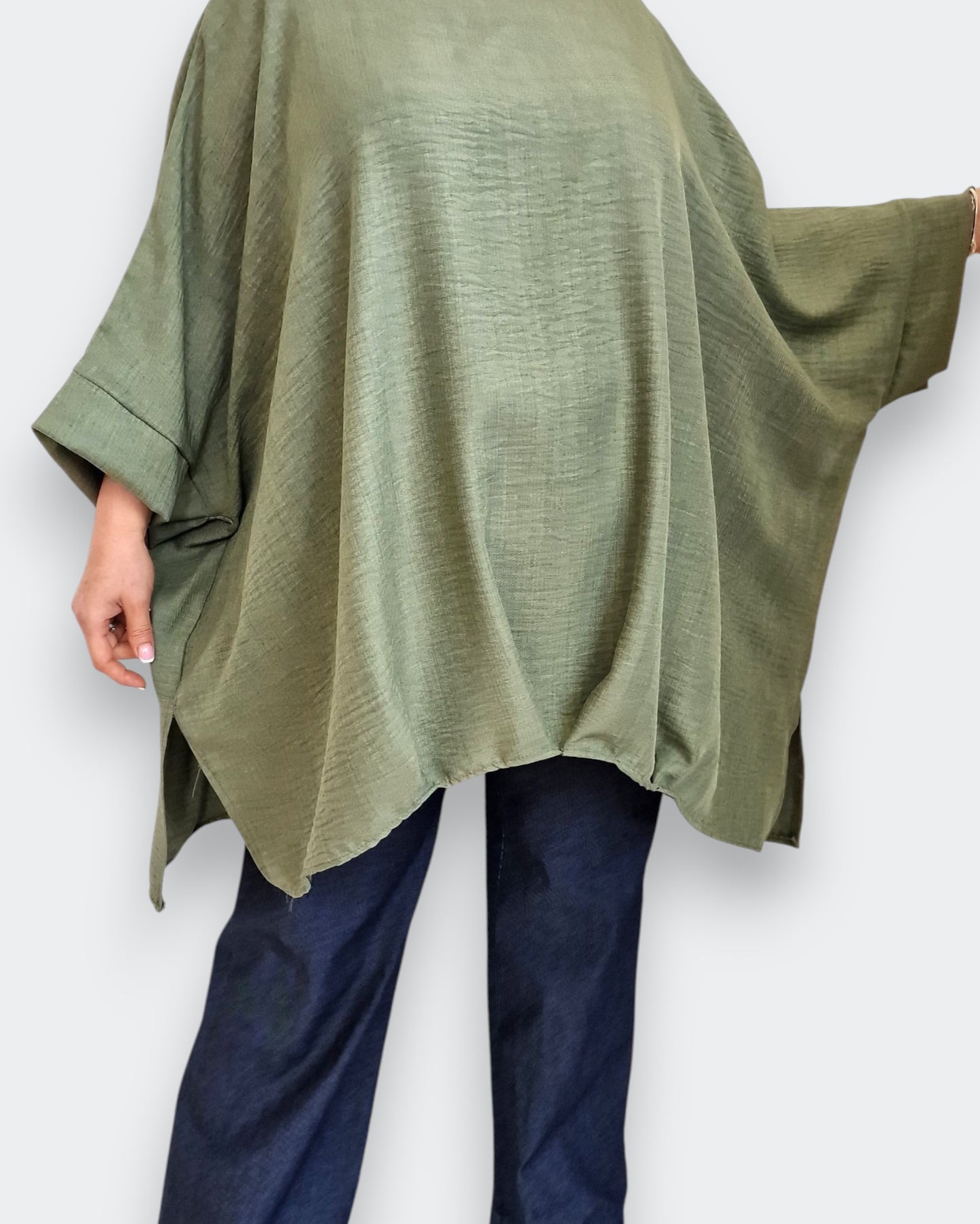 Il modello Gilda è una maxi maglia con manica pipistrello in tessuto fermo di misto viscosa. Ampio girocollo con pinces davanti e spacchi laterali. Grandissima vestibilità,
