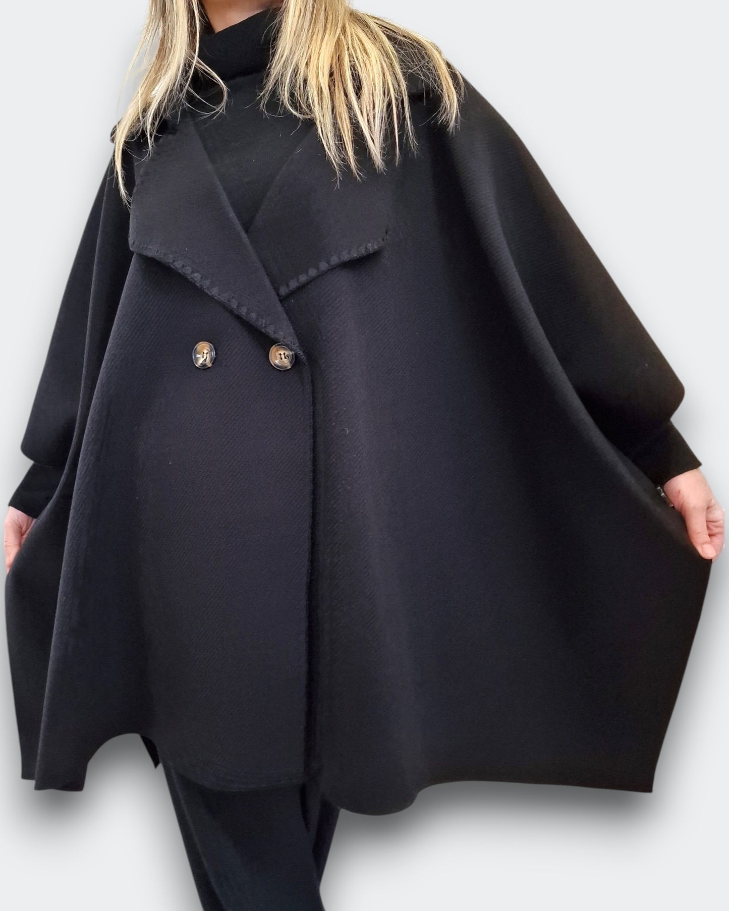 Questo maxi Mantella è il mix perfetto di praticità e stile per chi cerca comfort senza rinunciare all'eleganza. il capo ideale per il tuo guardaroba quotidiano.