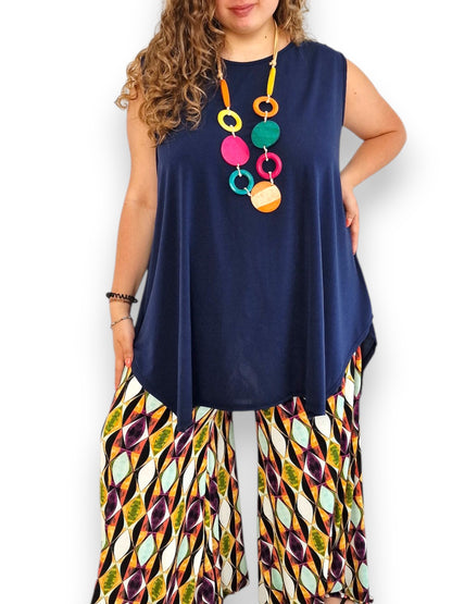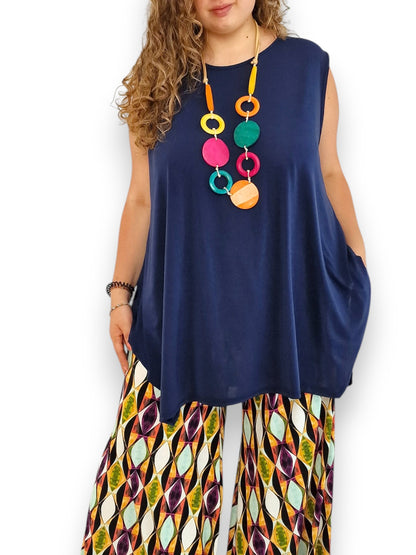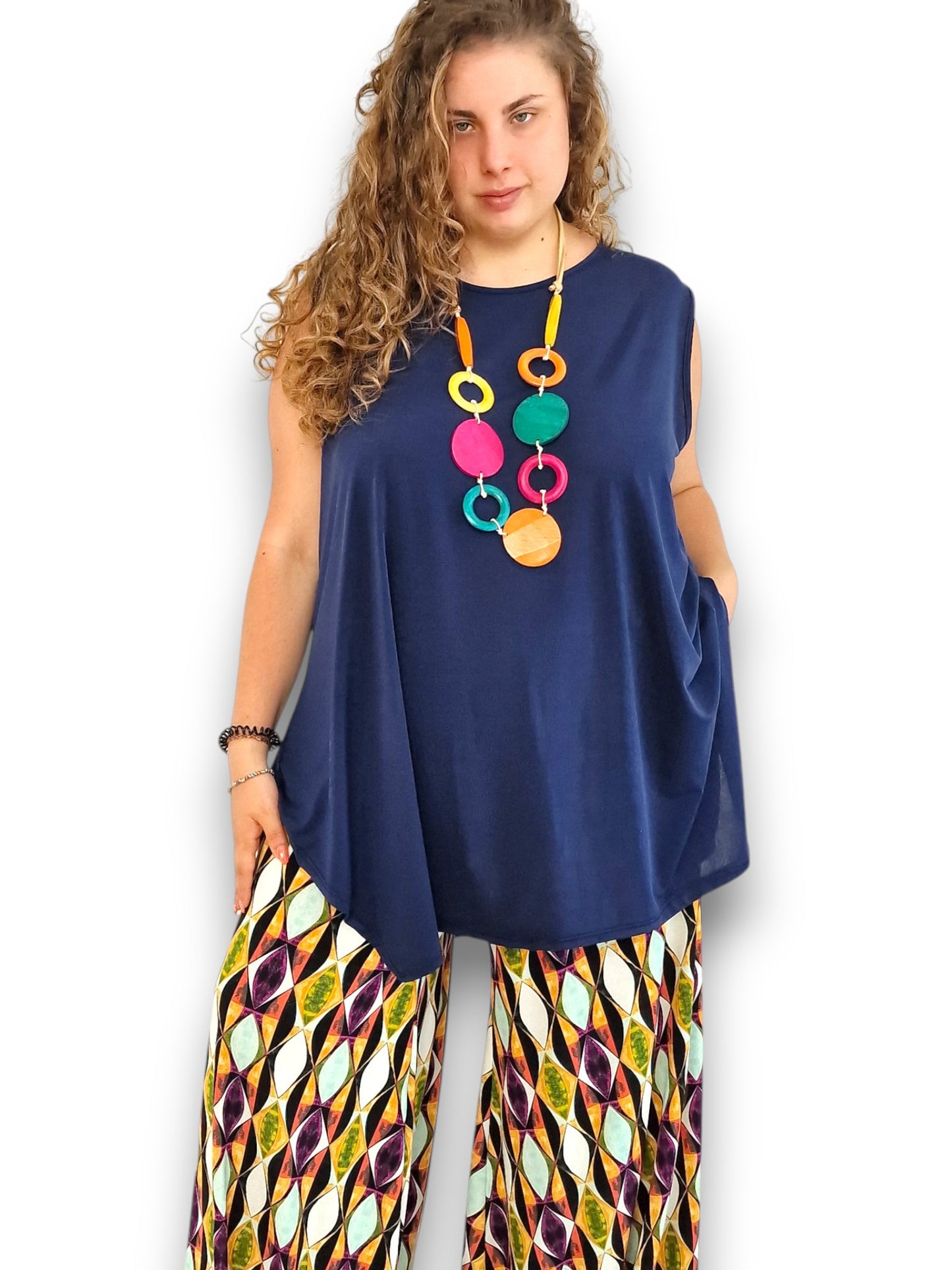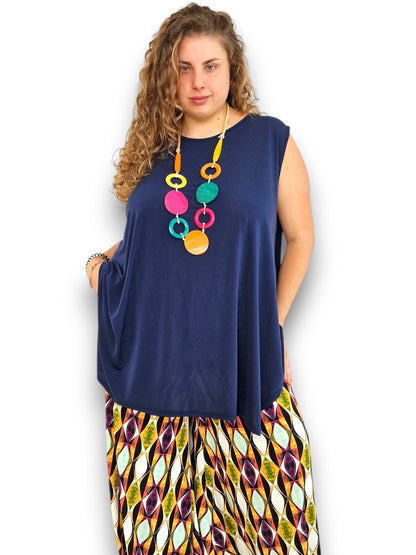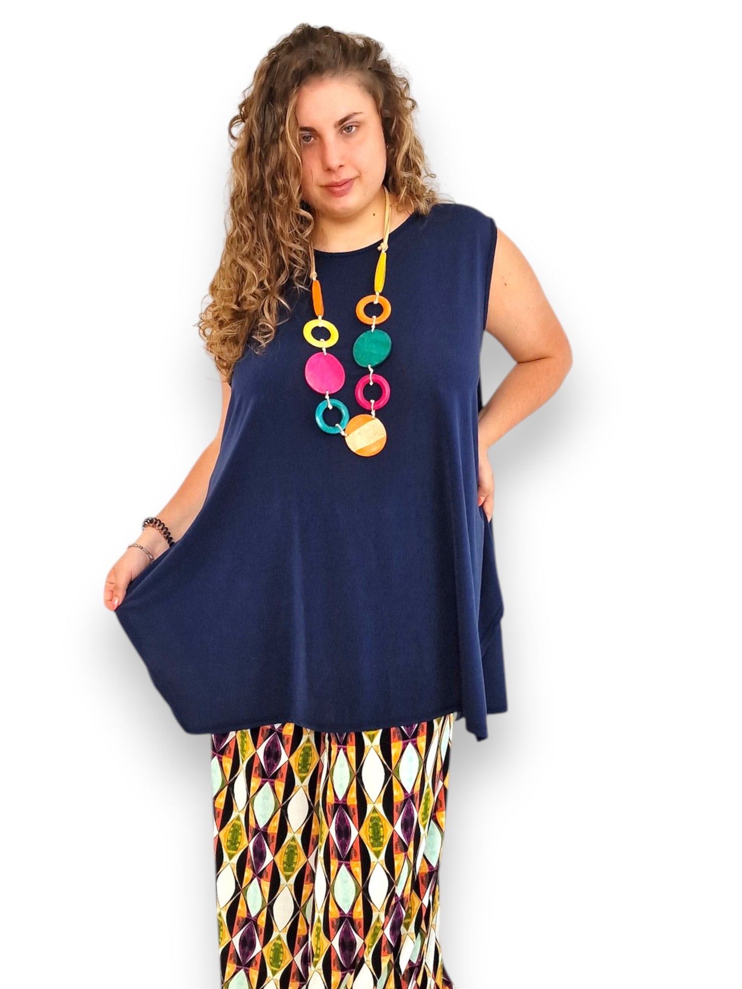 Scopri il Maxi Top Taglie Forti Valeria in crepe di misto viscosa elasticizzata tinta unita . Girocollo con grandi spacchi e taglio a trapezio per una grandissima vestibilità,