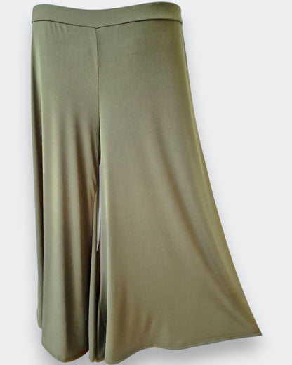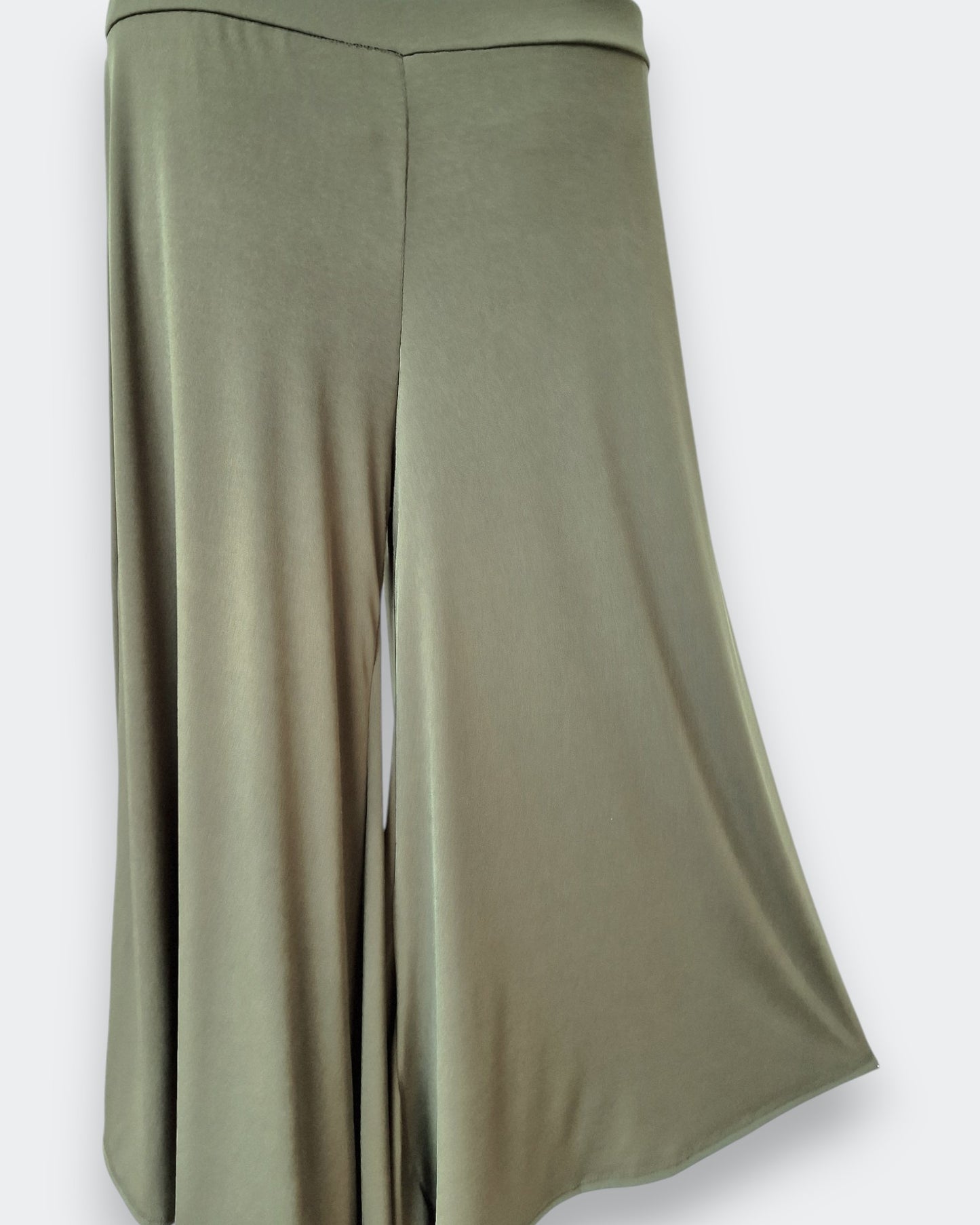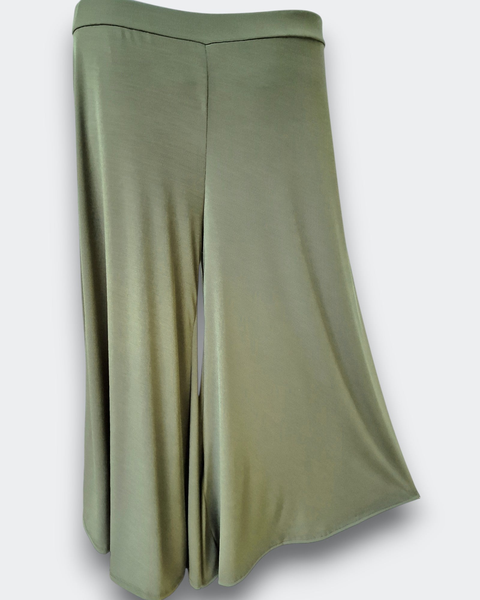 La Gonna / Pantalone Enego è una splendida gonna pantalone in maglina elasticizzata misto viscosa . Grandissima vestibilità. Taglia unica, veste bene fino ad una 60. Made in Italy. Colore Verde Militare.