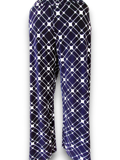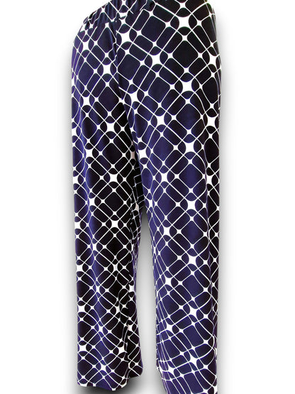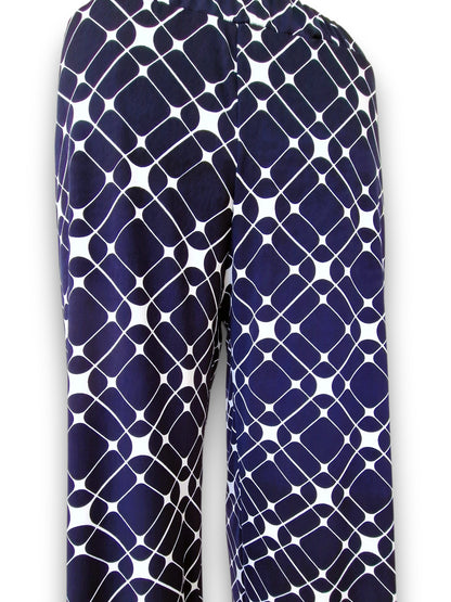 Il modello Baratti è un pantalone a vita alta in crepe di maglina elasticizzata di misto viscosa lucida Fantasia. Modello a palazzo con fascia elastica in vita. Grandissima vestibilità, taglia unica, Made in Italy, veste bene fino ad una taglia 58/60. Colore Fantasia