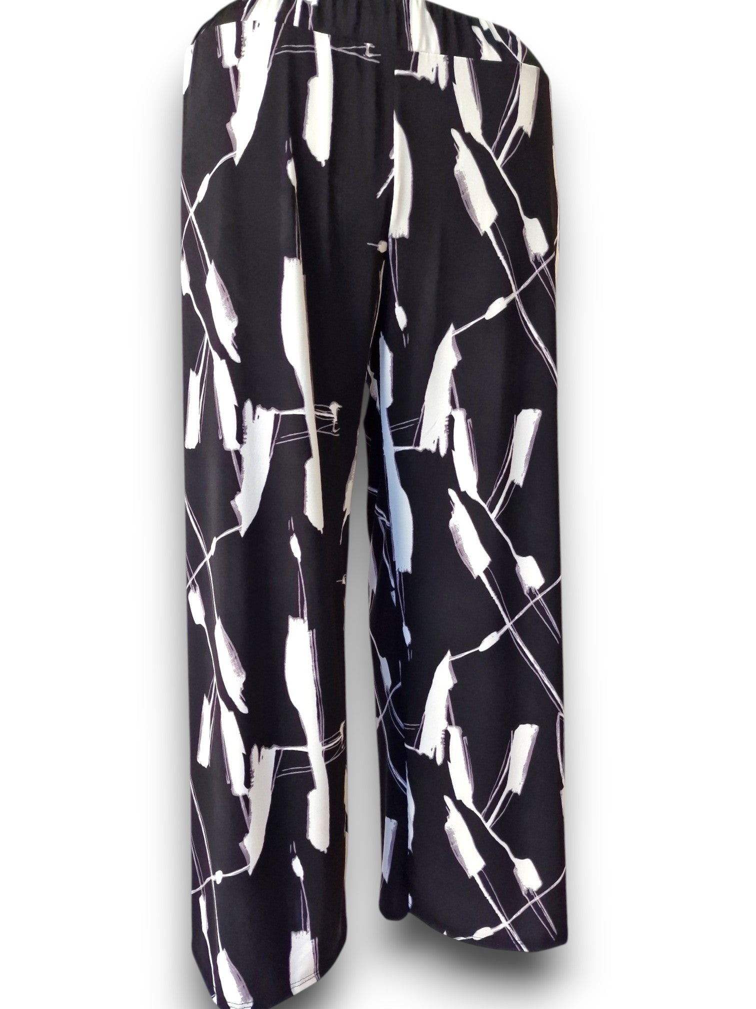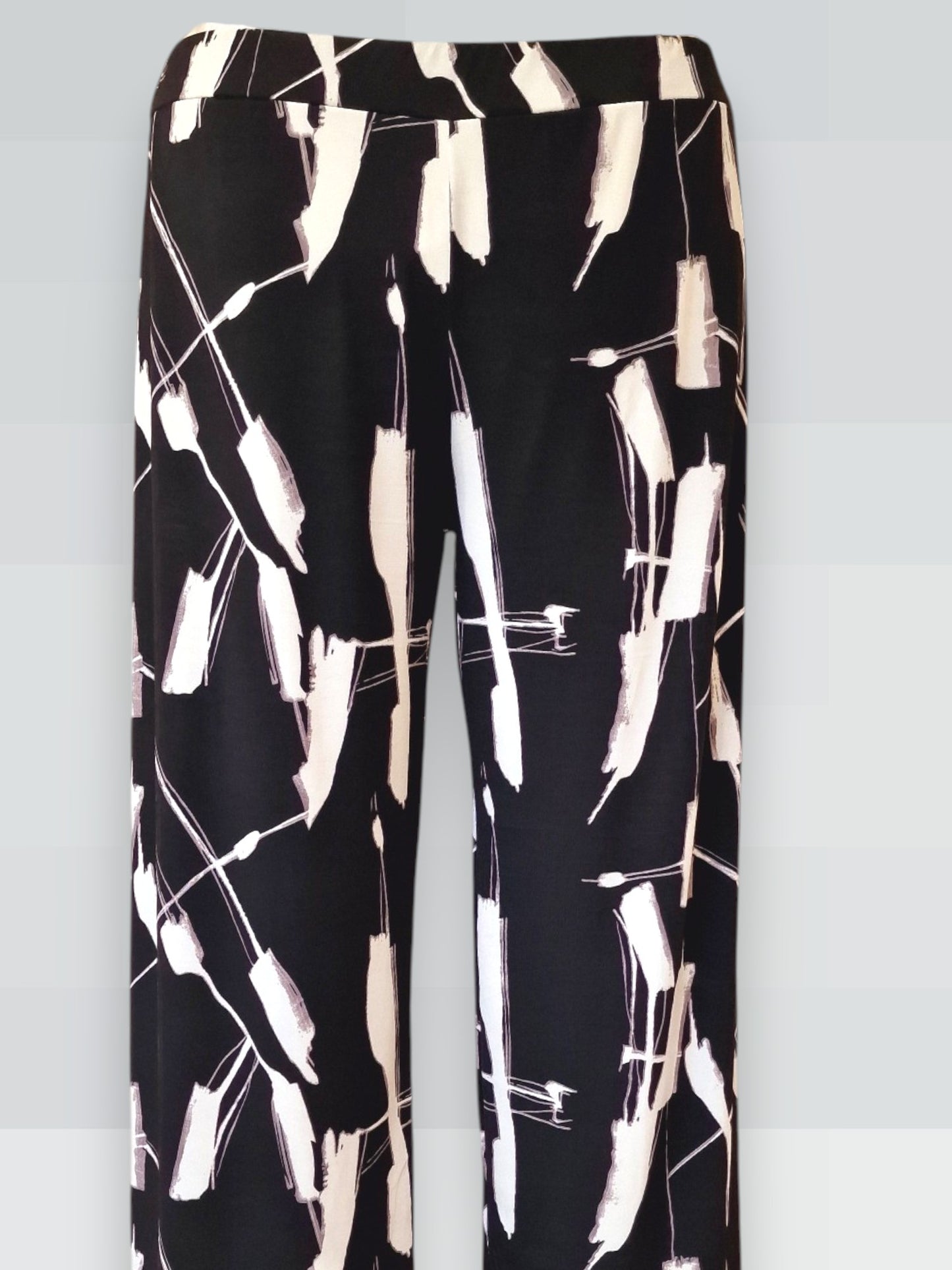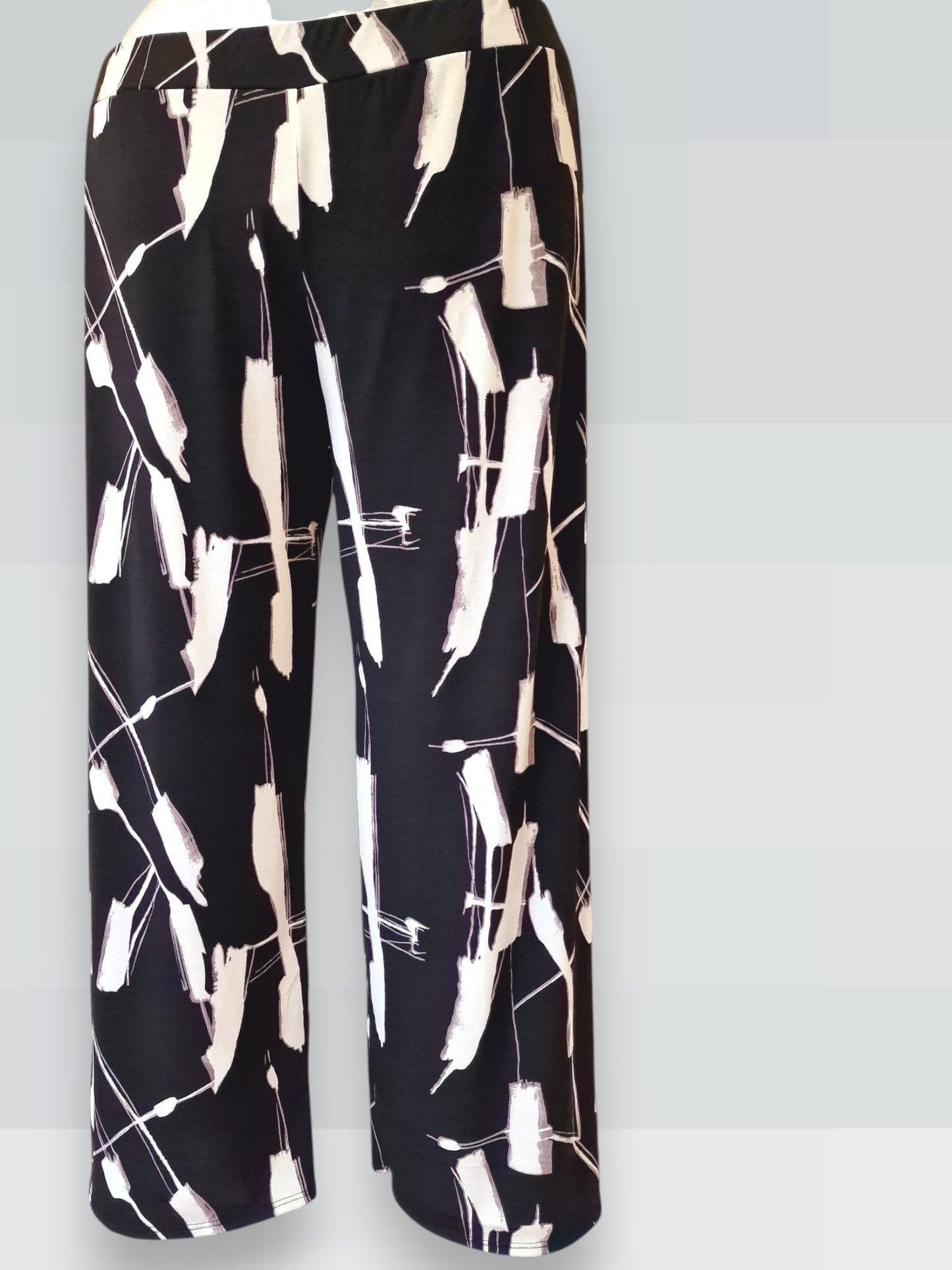 Il modello Livorno è un pantalone a vita alta in crepe di maglina elasticizzata di misto viscosa lucida Fantasia. Modello a palazzo con fascia elastica in vita. Grandissima vestibilità, taglia unica, Made in Italy, veste bene fino ad una taglia 58/60. Colore Fantasia