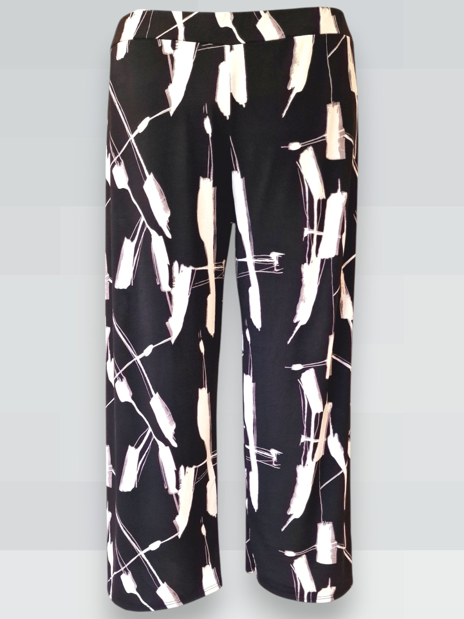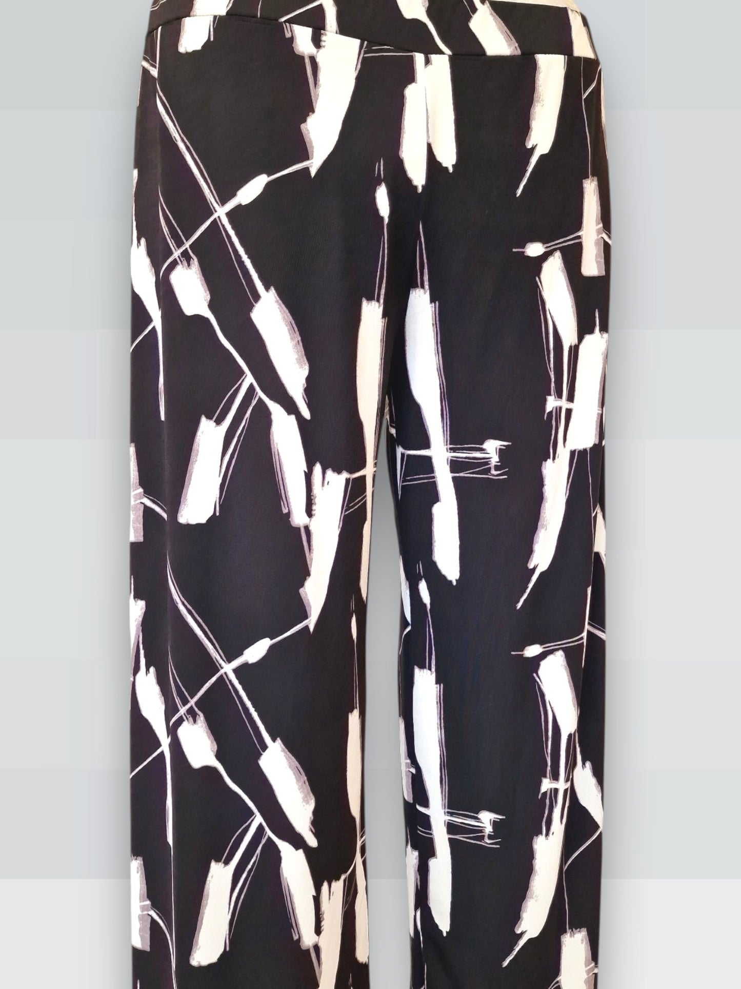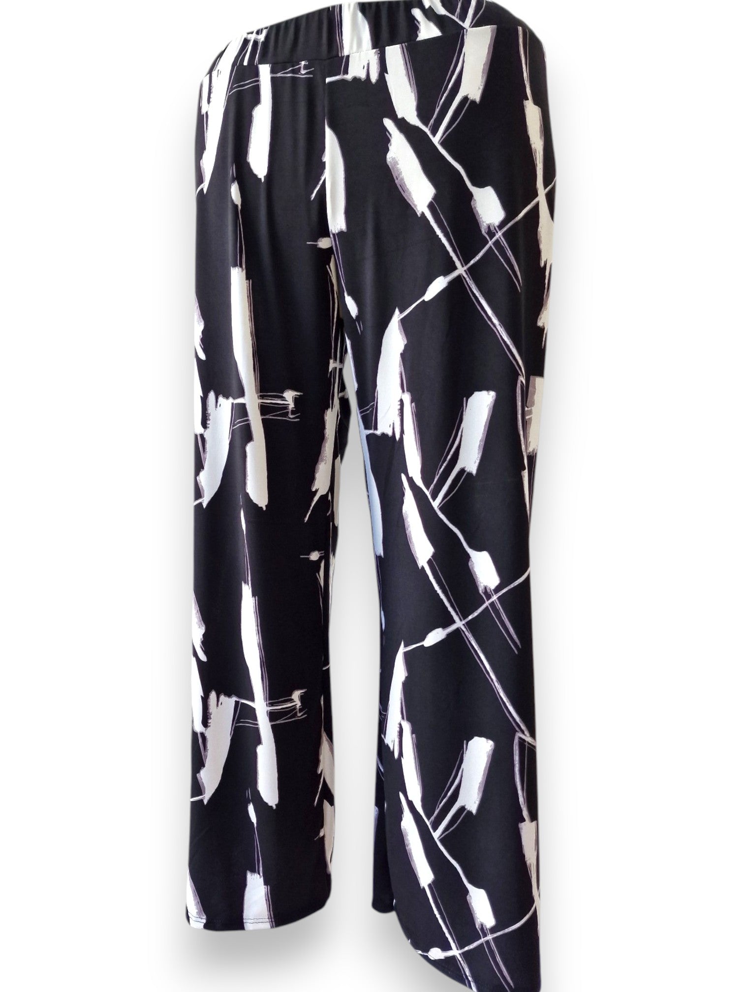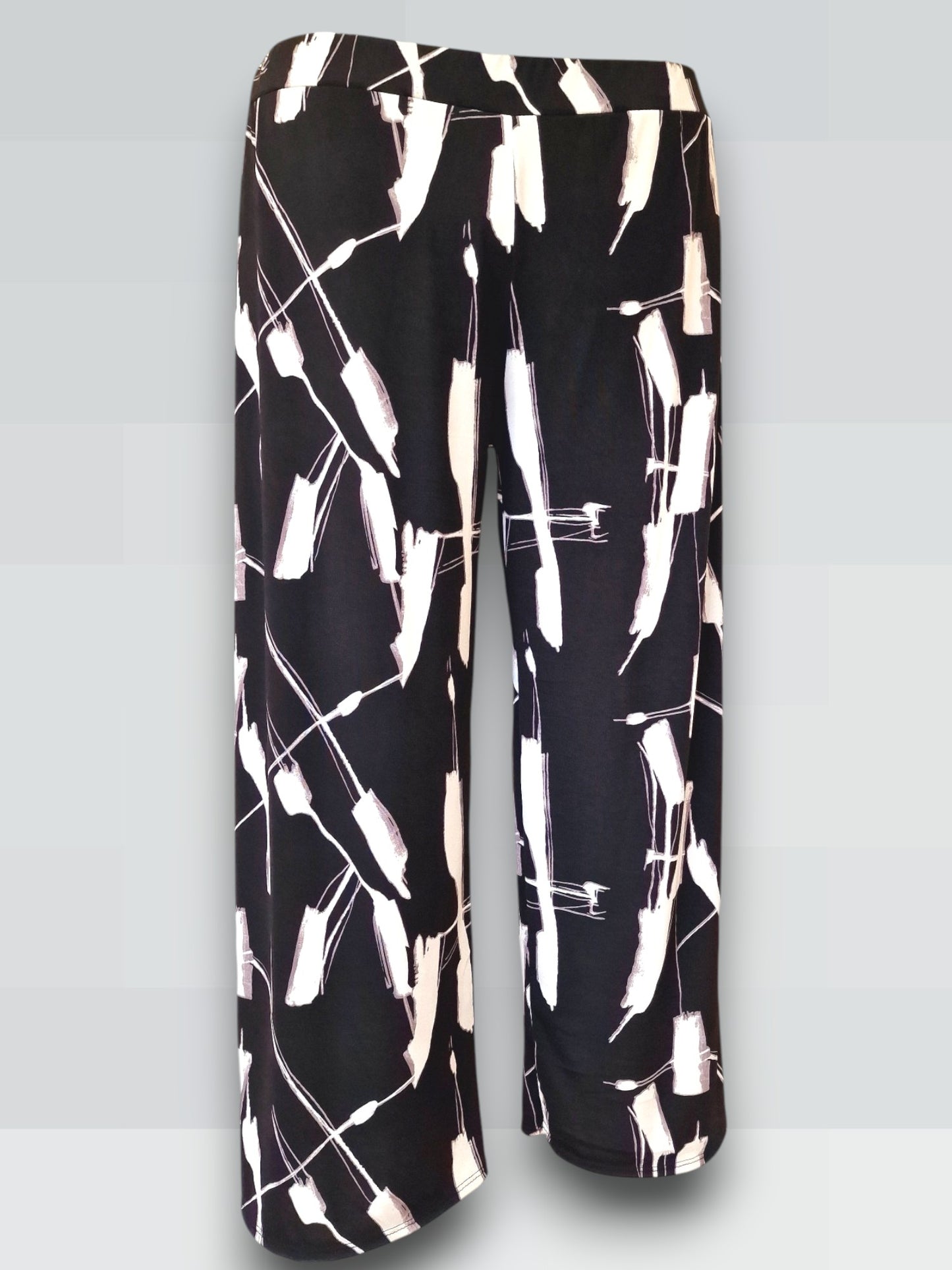 Il modello Livorno è un pantalone a vita alta in crepe di maglina elasticizzata di misto viscosa lucida Fantasia. Modello a palazzo con fascia elastica in vita. Grandissima vestibilità, taglia unica, Made in Italy, veste bene fino ad una taglia 58/60. Colore Fantasia