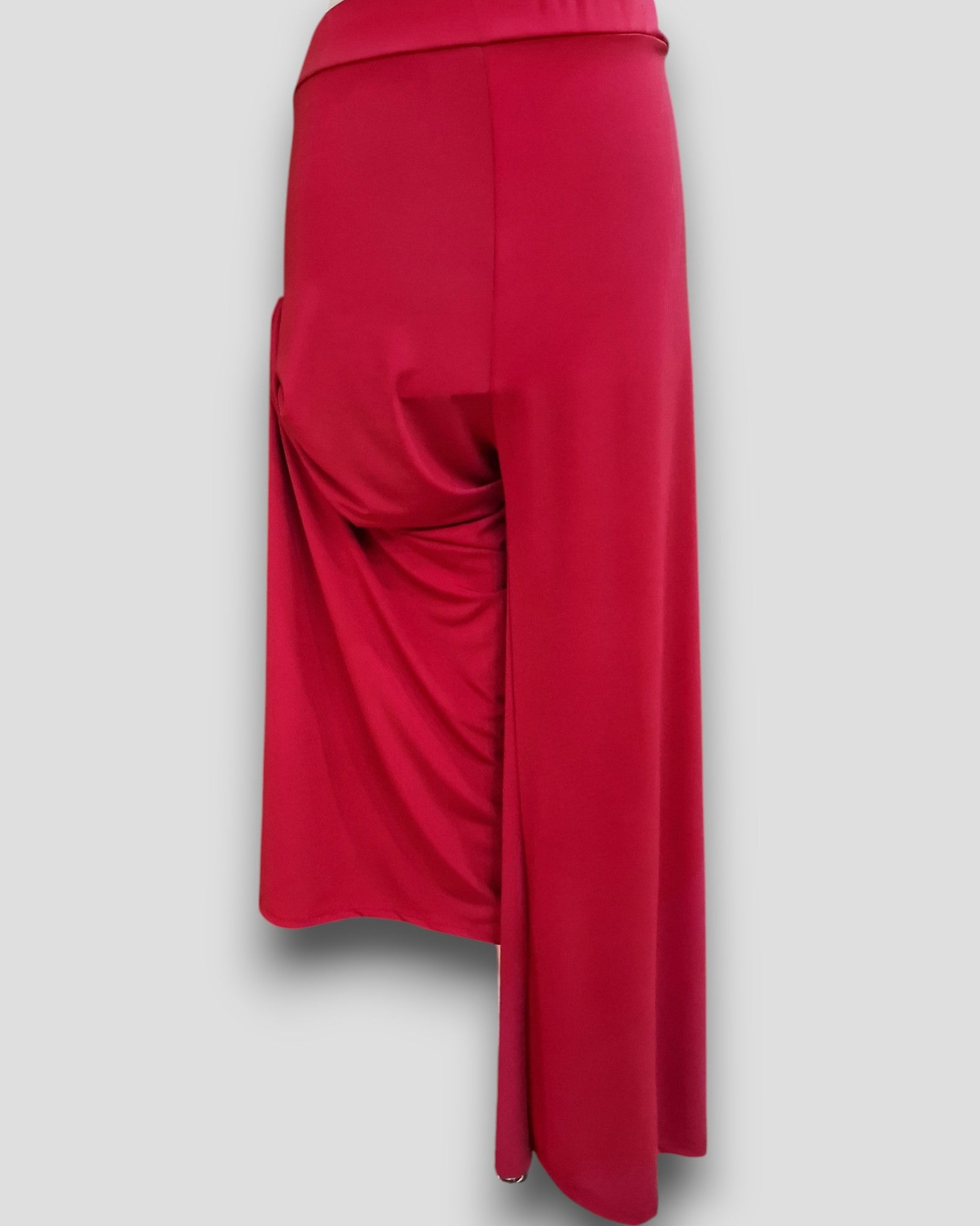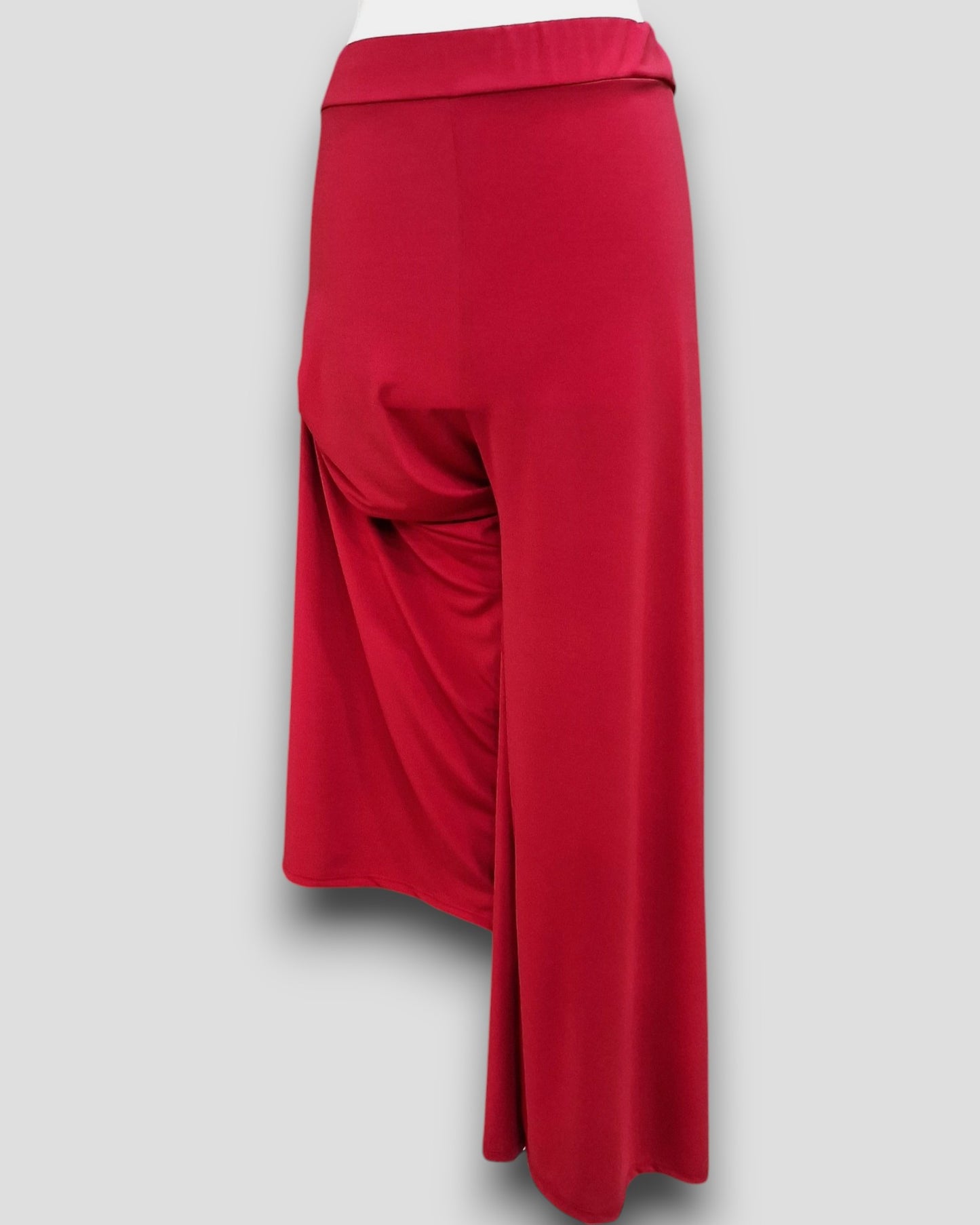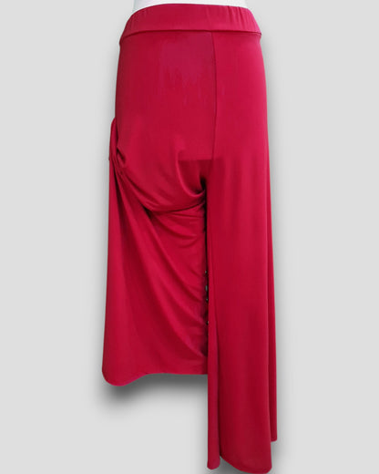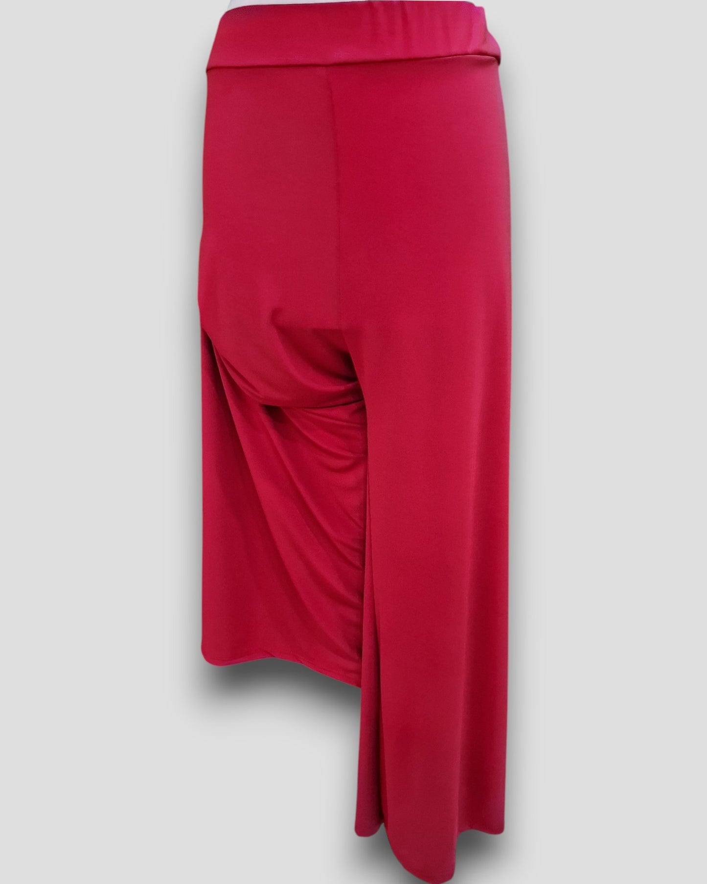 Il modello Cerveteri è un pantalone a vita alta in crepe di maglina elasticizzata di misto viscosa lucida a palazzo con fascia elastica in vita. Grandissima vestibilità, taglia unica, Made in Italy, veste bene fino ad una taglia 62. Colore ROSSO INDIA.