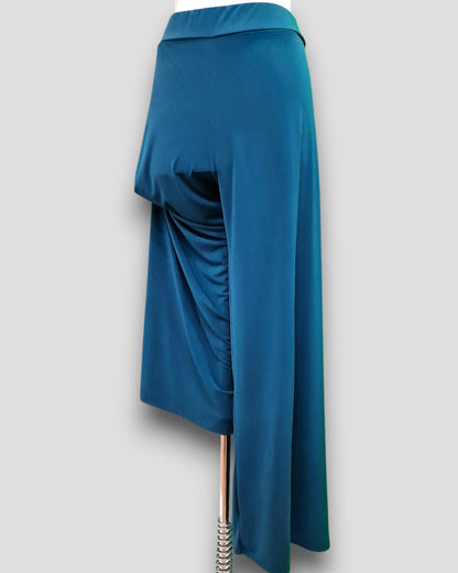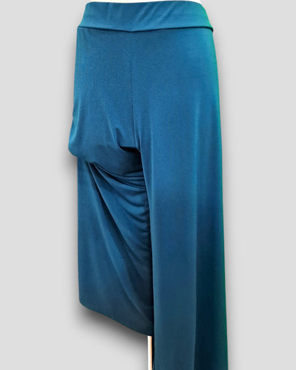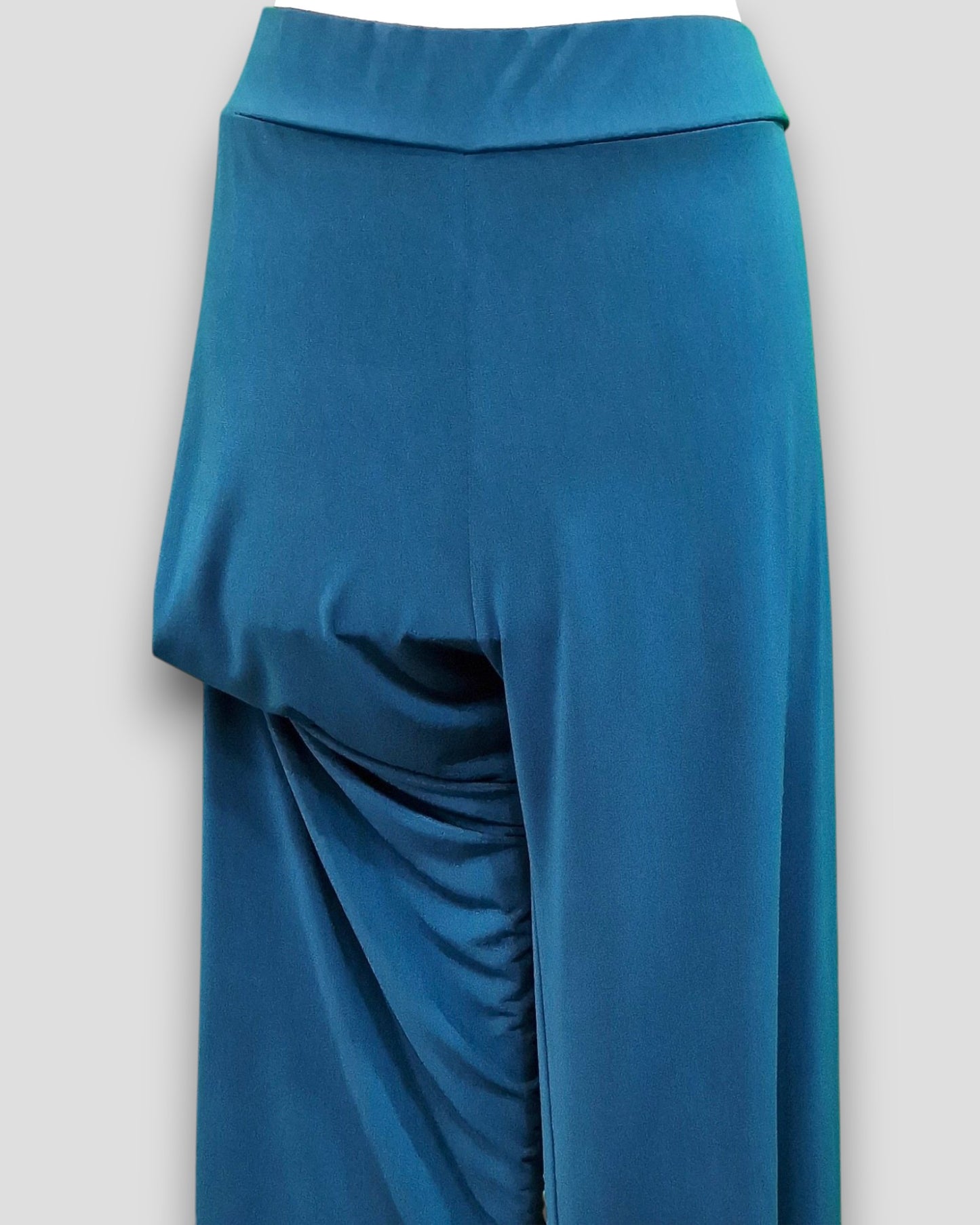 Il modello Ladispoli è un pantalone a vita alta in crepe di maglina elasticizzata di misto viscosa lucida a palazzo con fascia elastica in vita. Grandissima vestibilità, taglia unica, Made in Italy, veste bene fino ad una taglia 62. Colore OTTANIO.