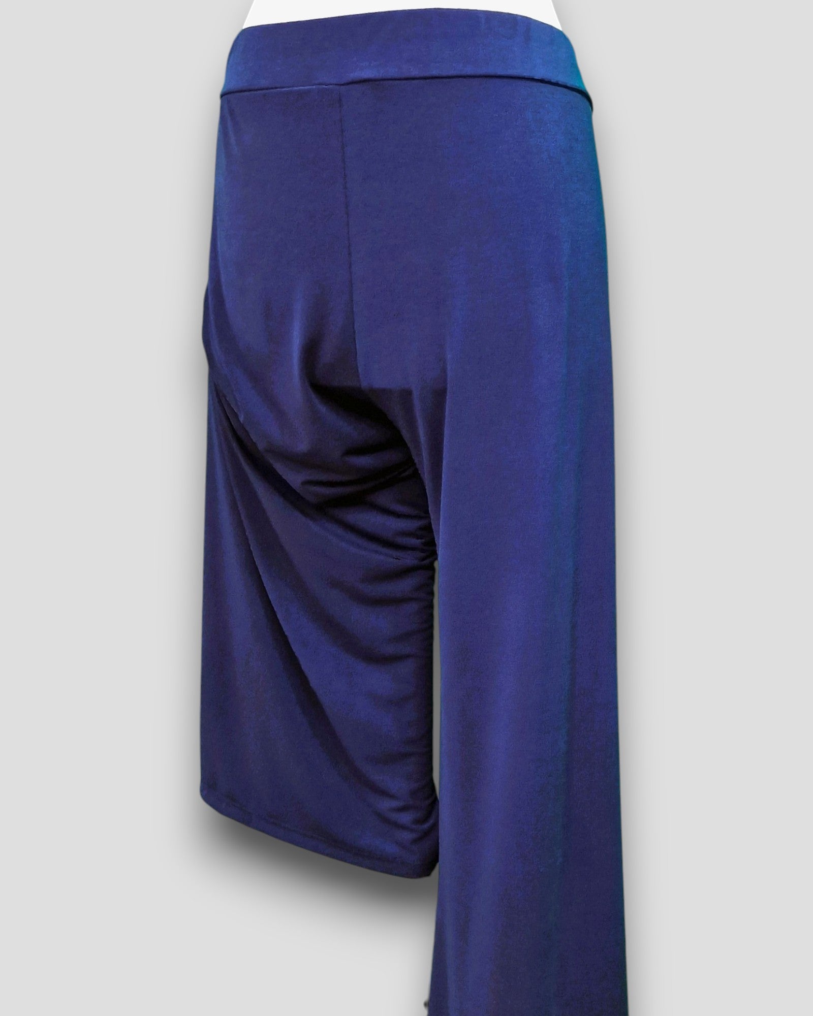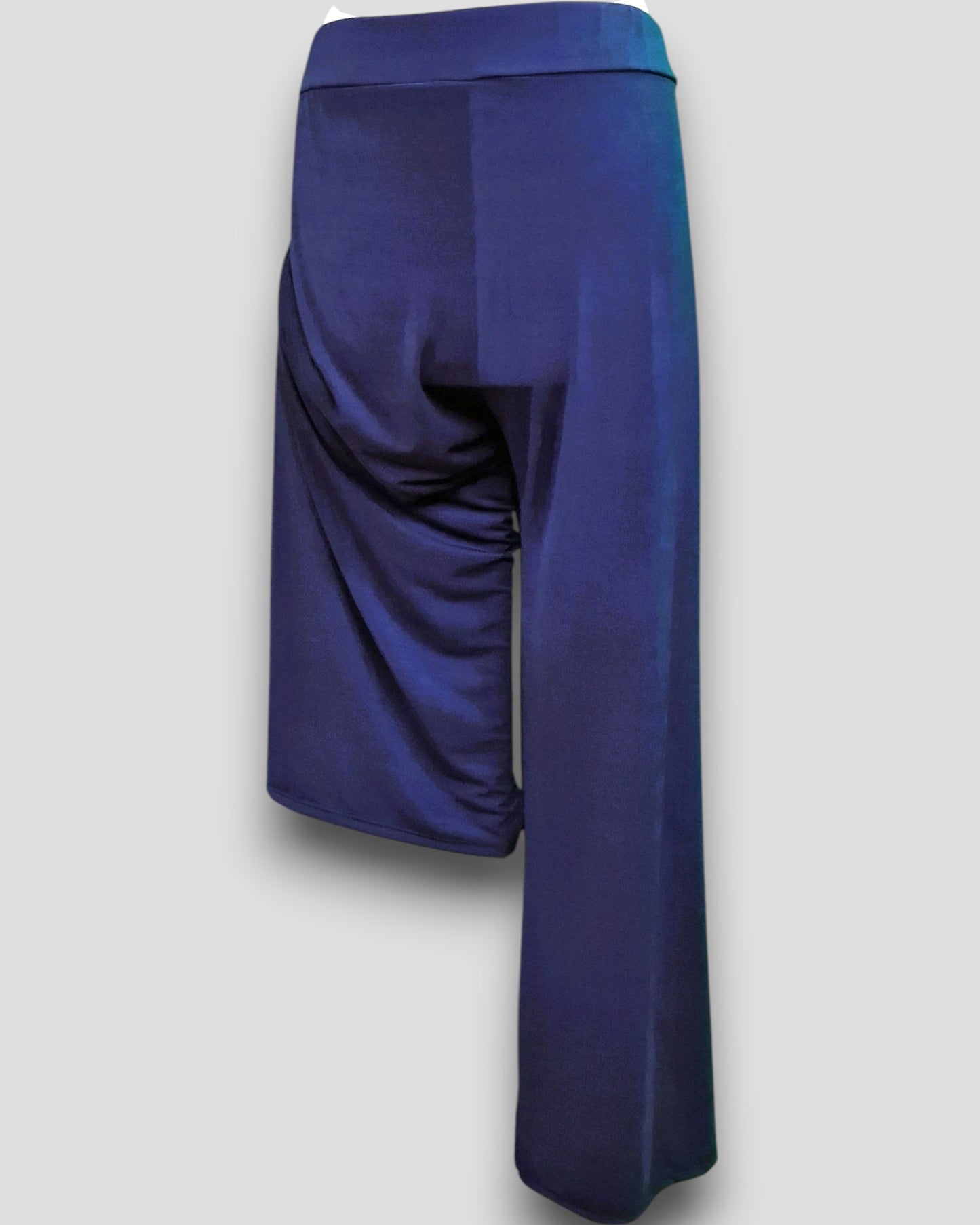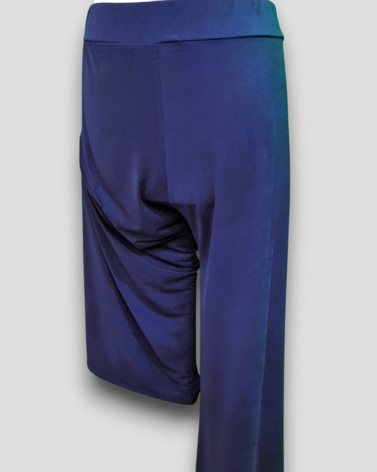 Il modello Montalto è un pantalone a vita alta in crepe di maglina elasticizzata di misto viscosa lucida a palazzo con fascia elastica in vita. Grandissima vestibilità, taglia unica, Made in Italy, veste bene fino ad una taglia 62. Colore BLU.