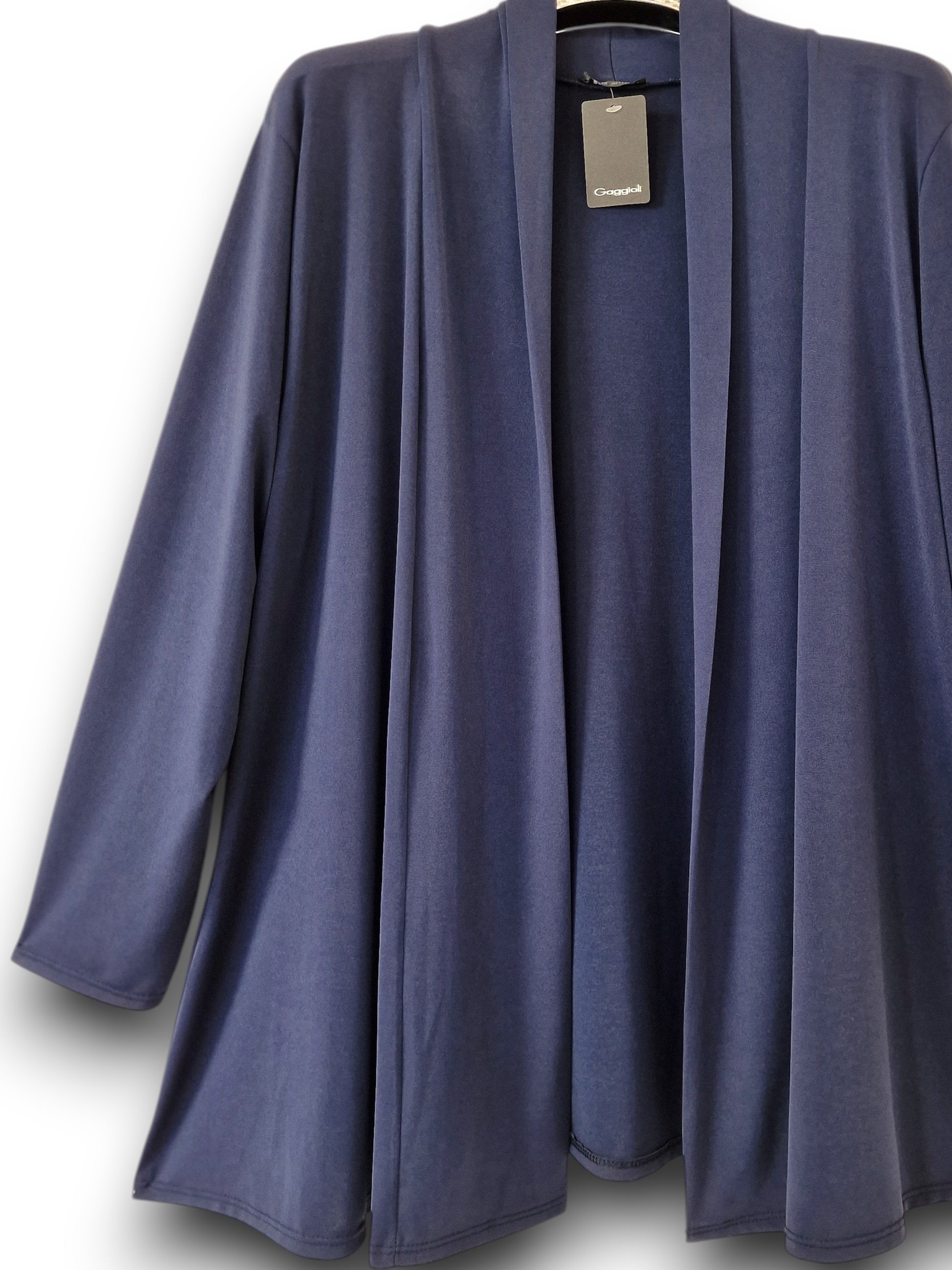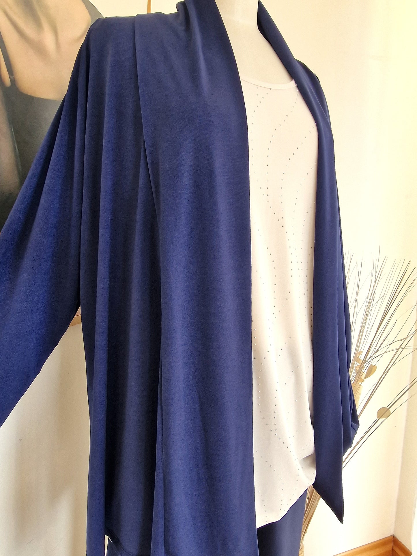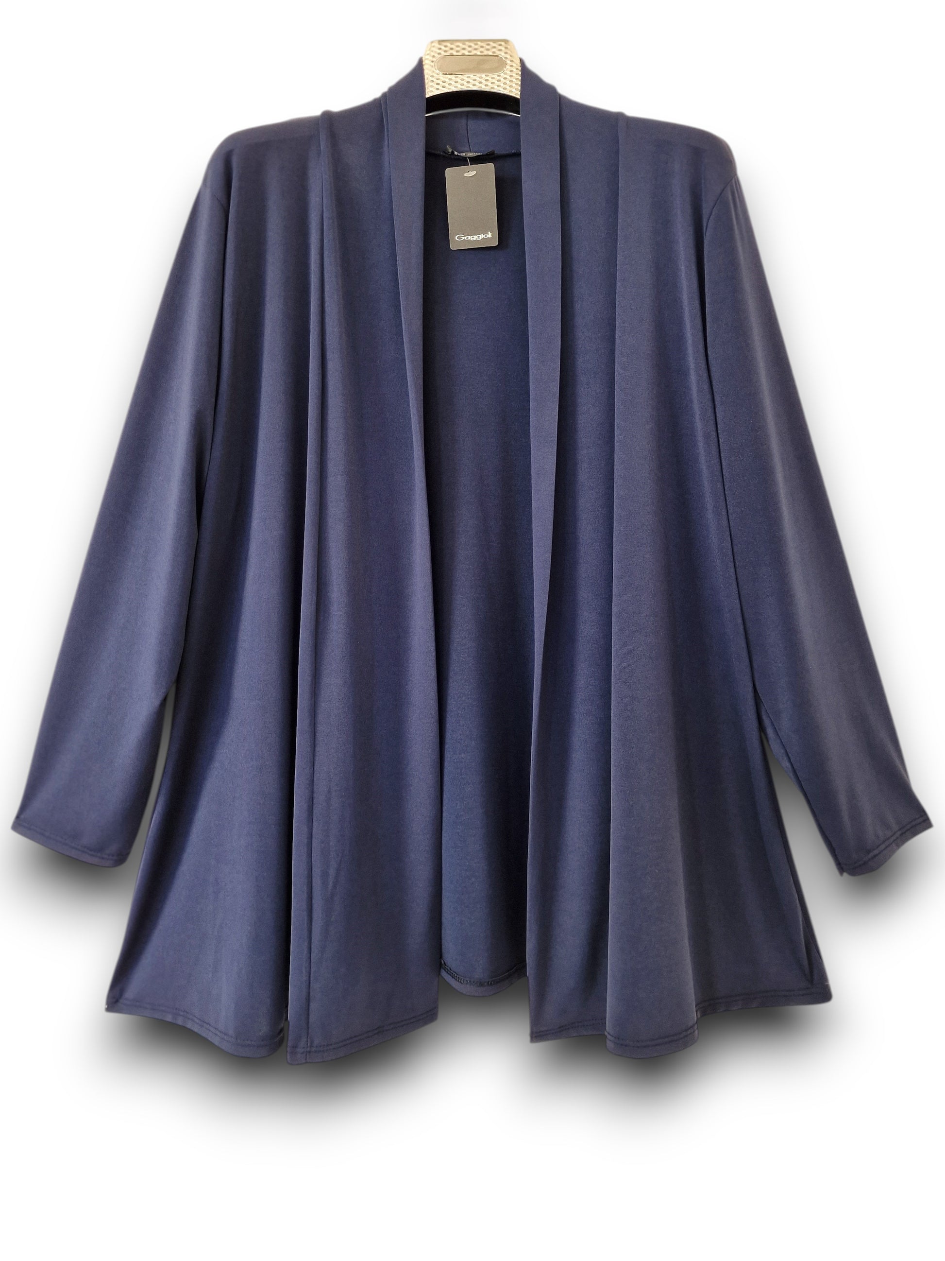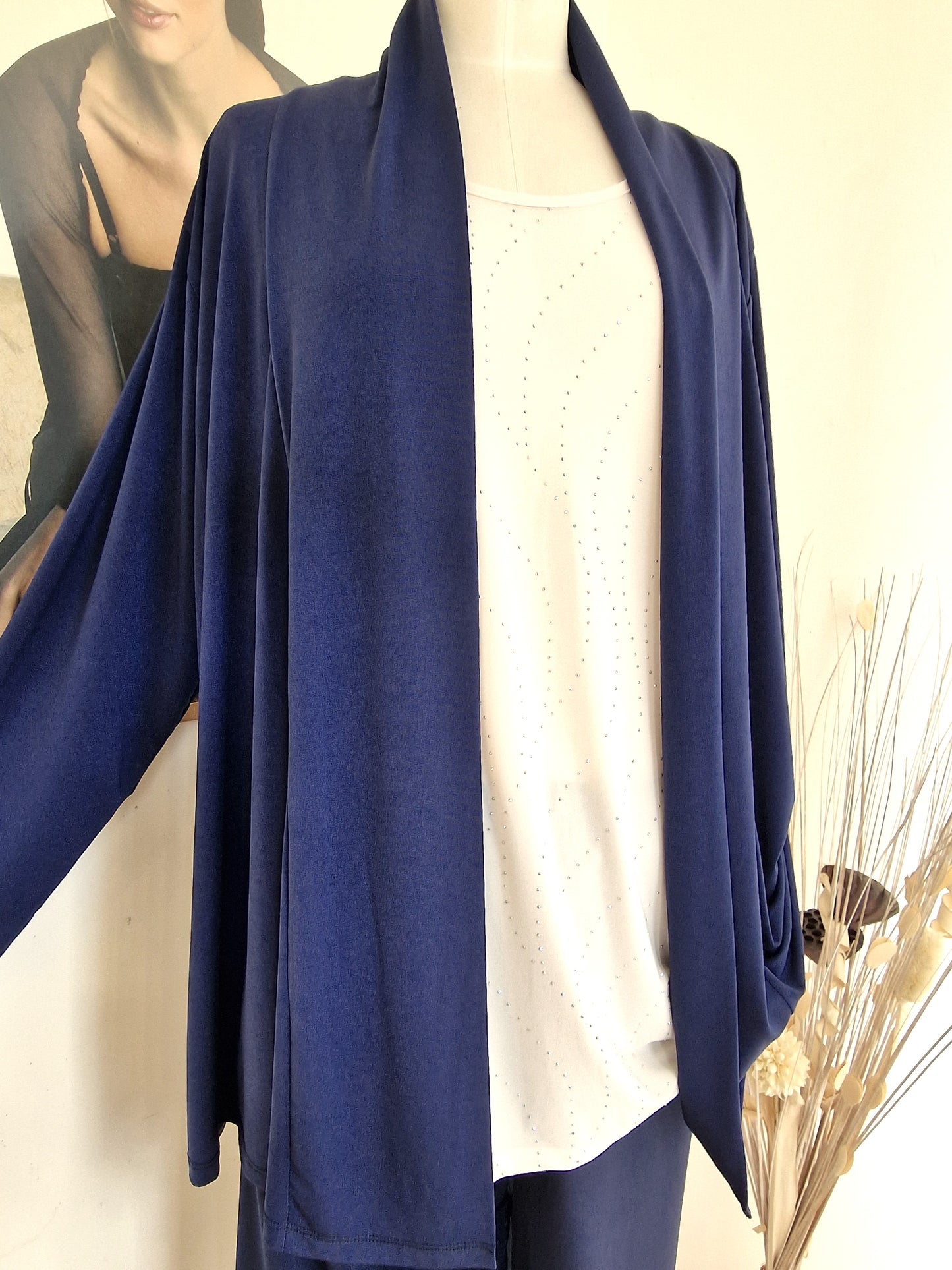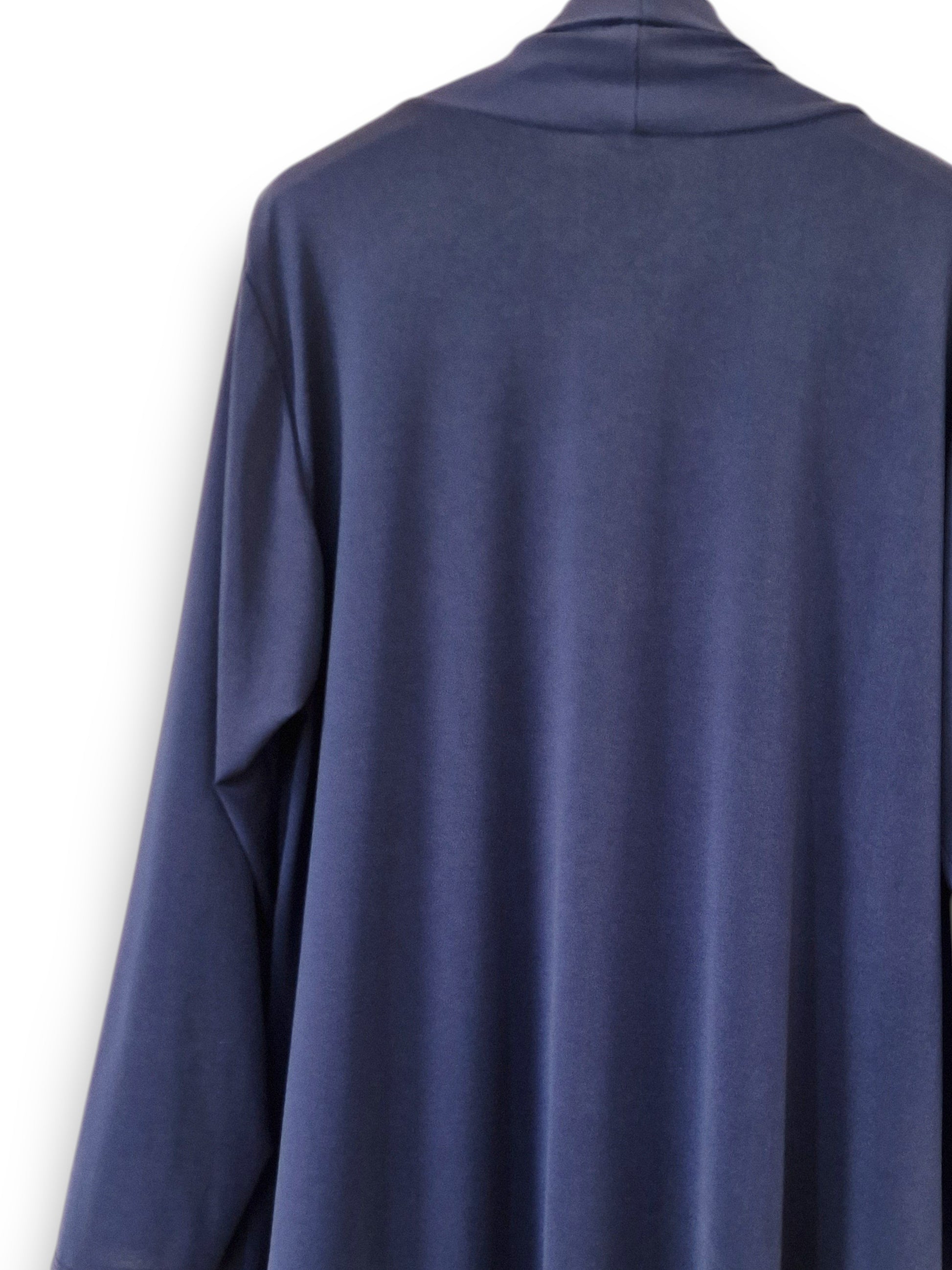 Il modello Nara è uno splendido Spolverino taglia grande in crepe di maglina di misto viscosa elasticizzata con collo sciallato. Grandissima vestibilità, Made in Italy, taglia unica colore BLU.