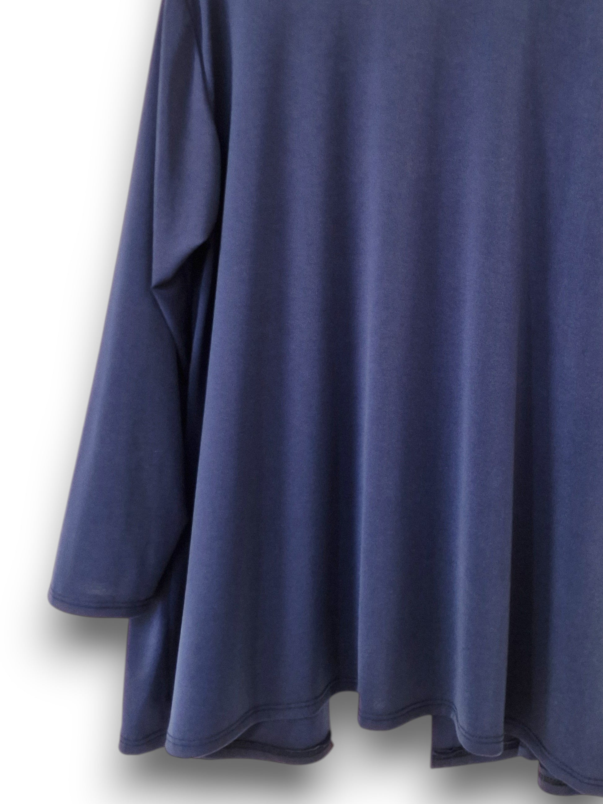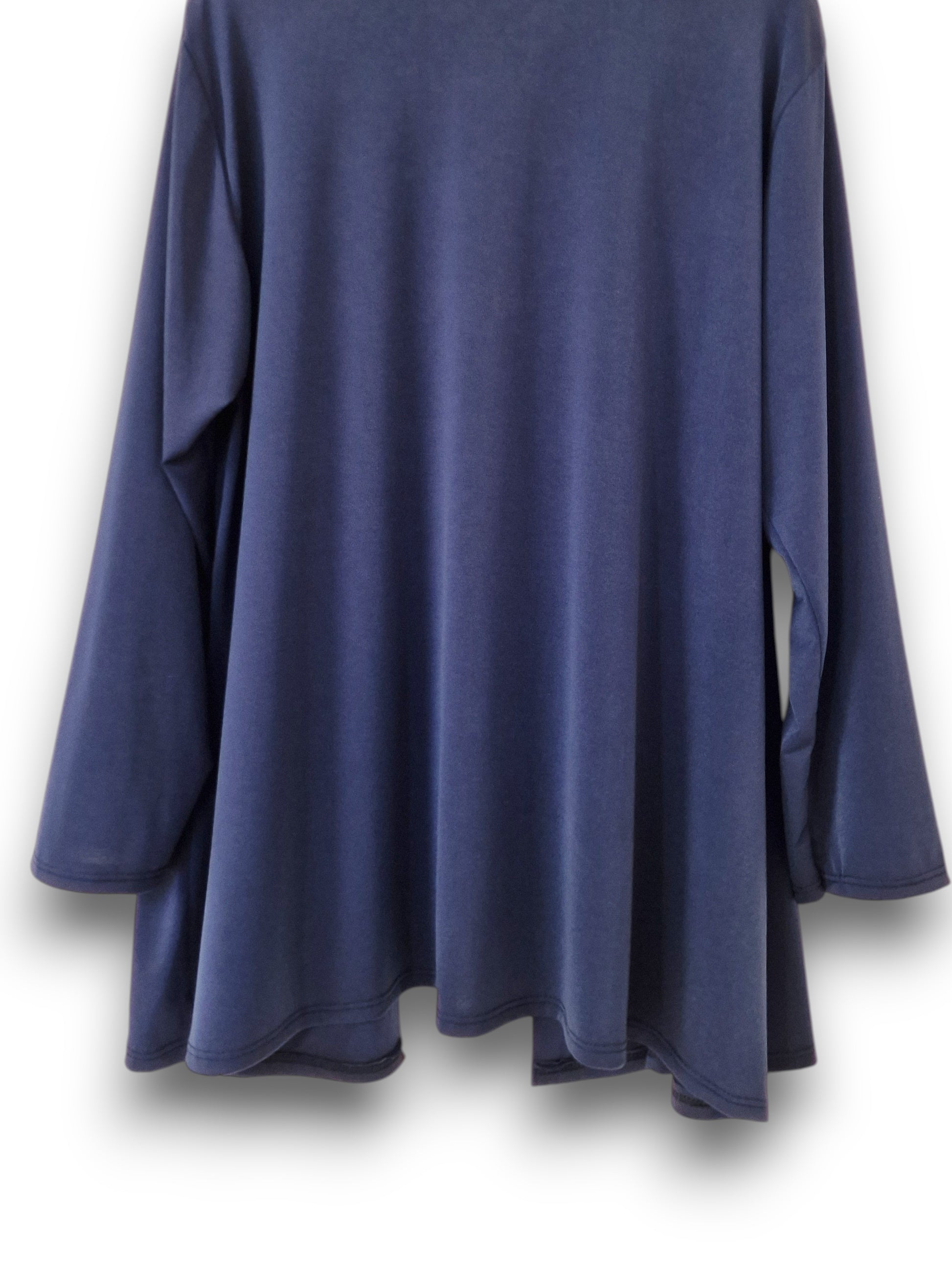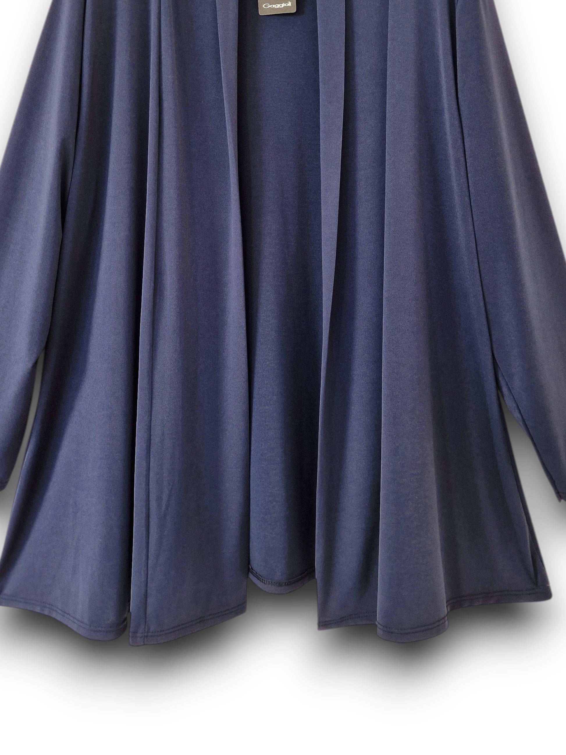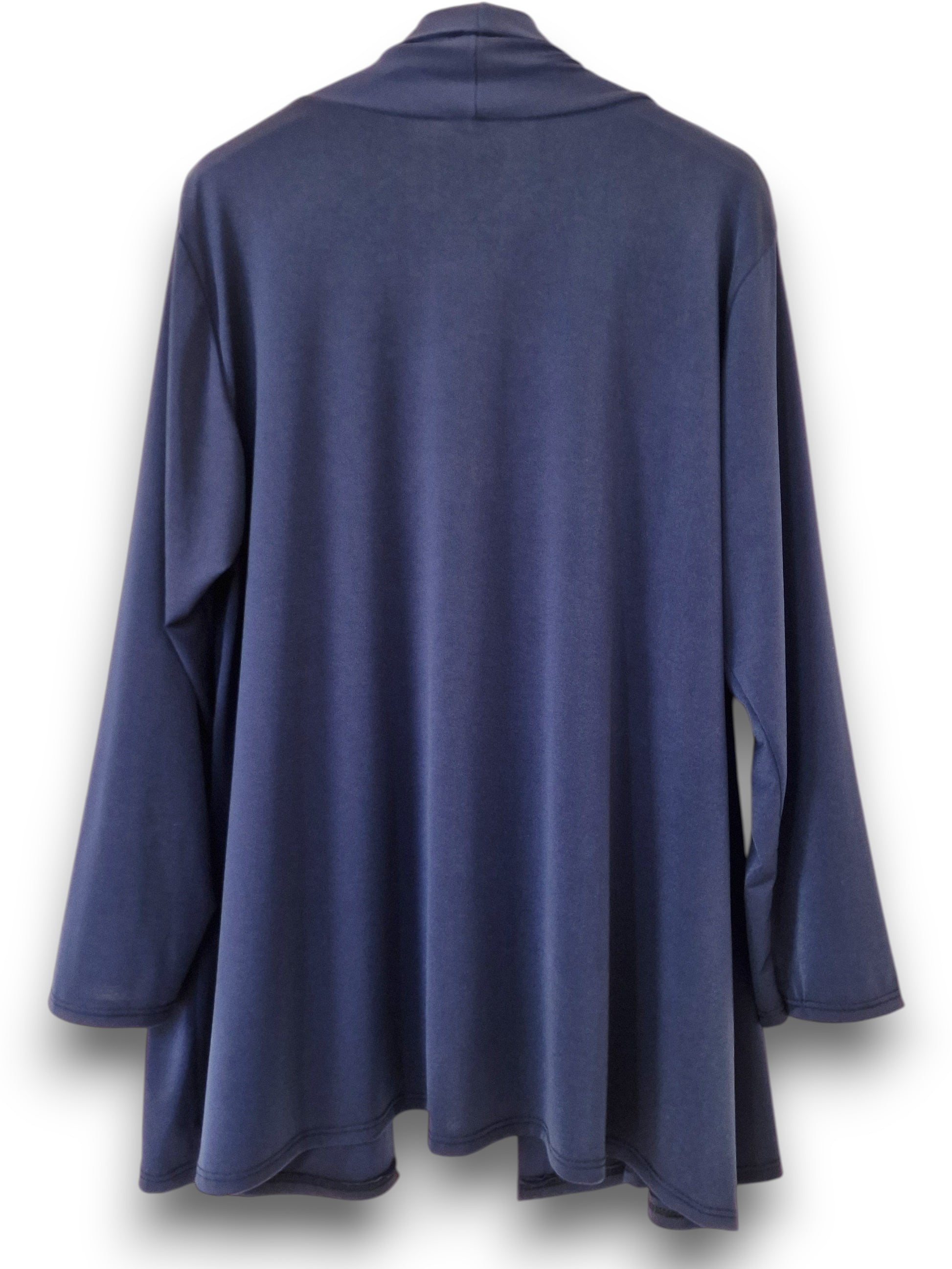 Il modello Nara è uno splendido Spolverino taglia grande in crepe di maglina di misto viscosa elasticizzata con collo sciallato. Grandissima vestibilità, Made in Italy, taglia unica colore BLU.